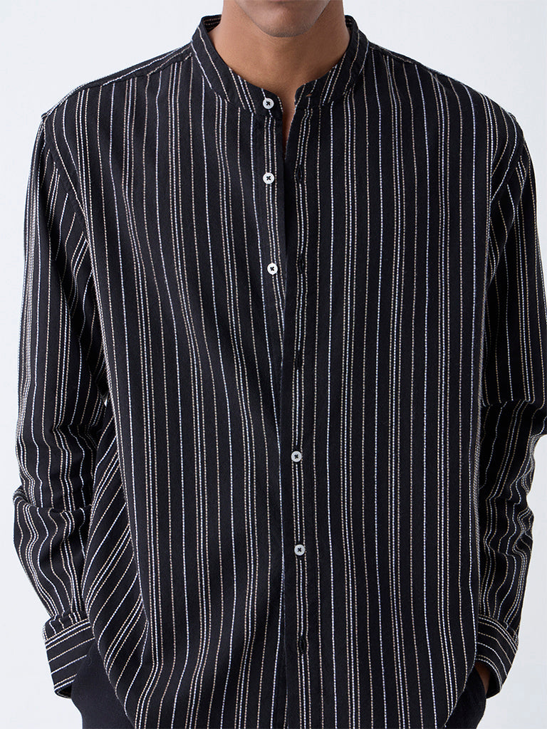 ETA Black Striped Relaxed-Fit Cotton Shirt