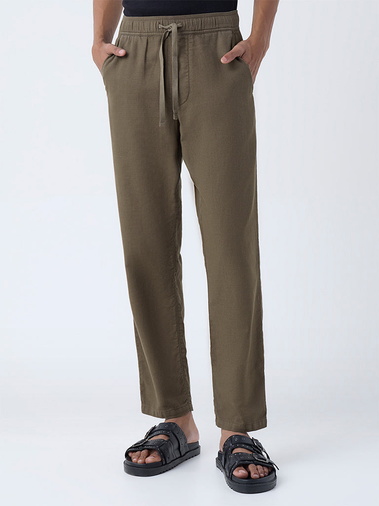 ETA Dark Taupe Solid Relaxed-Fit Mid-Rise Cotton Pants
