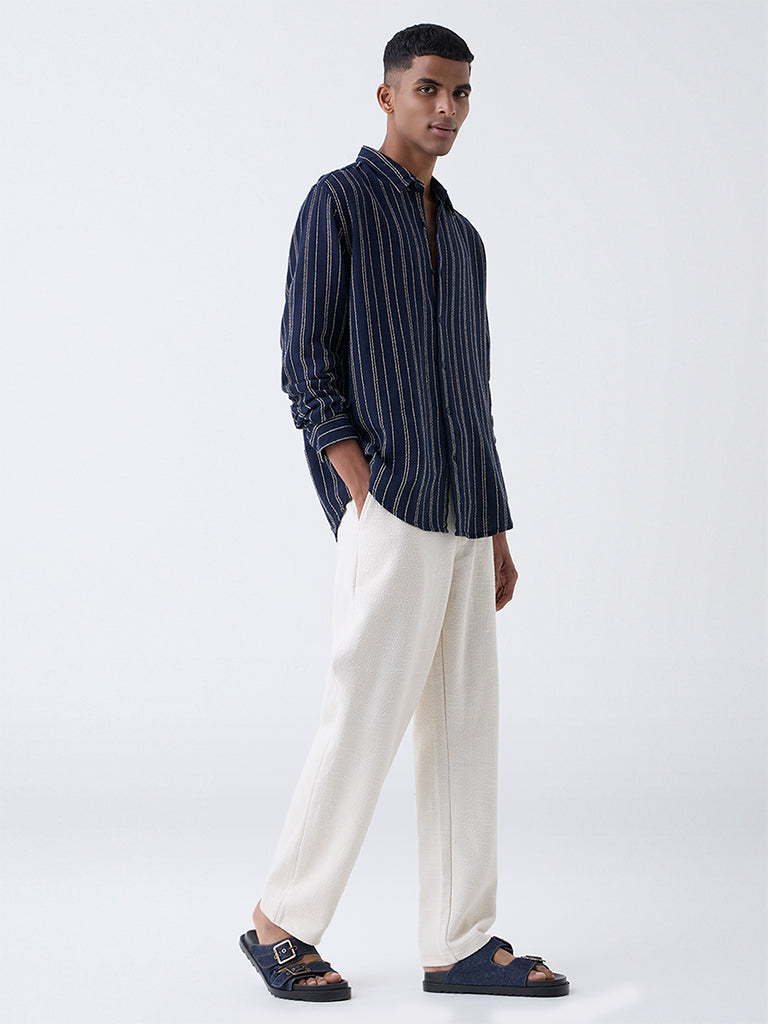 ETA Navy Striped Relaxed-Fit Cotton Shirt