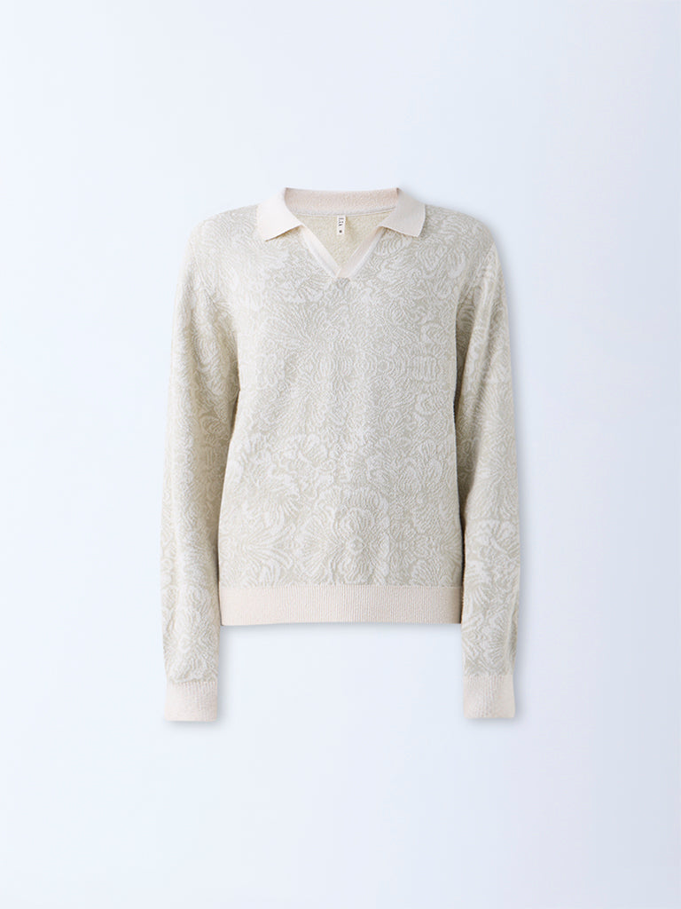 Add quiet character to your winter wardrobe with this off-white sweater from ETA. Spun from a lightweight knit that balances warmth and softness, it showcases subtle abstract prints for a distinctive touch. The relaxed fit with a V-neck and full sleeves lends itself to easy layering with understated sophistication.