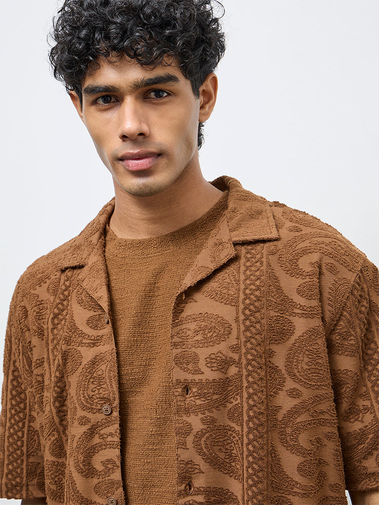ETA Tan Paisley Embroidered Relaxed-Fit Cotton-Blend Shirt
