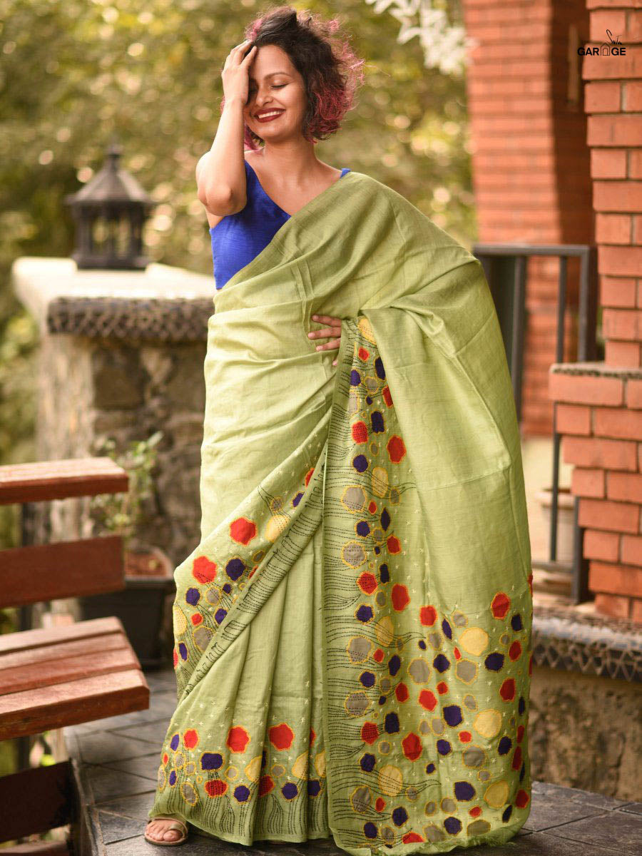 Fabric: Handloom tussar silk with hand embroidery and applique