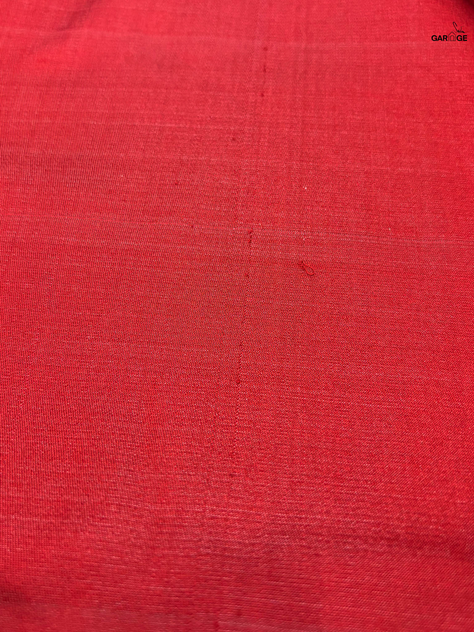This saree has been handwoven by a master weaver in the Mashru tradition. The Mashru weave is said to have originated in West Asia, in the 19th Century. The fabric is woven with a silk weft and a fine cotton warp. It thus combines the ageless comfort of cotton and the timeless aesthetic of silk, elevated by the presence of gold and silver zari.