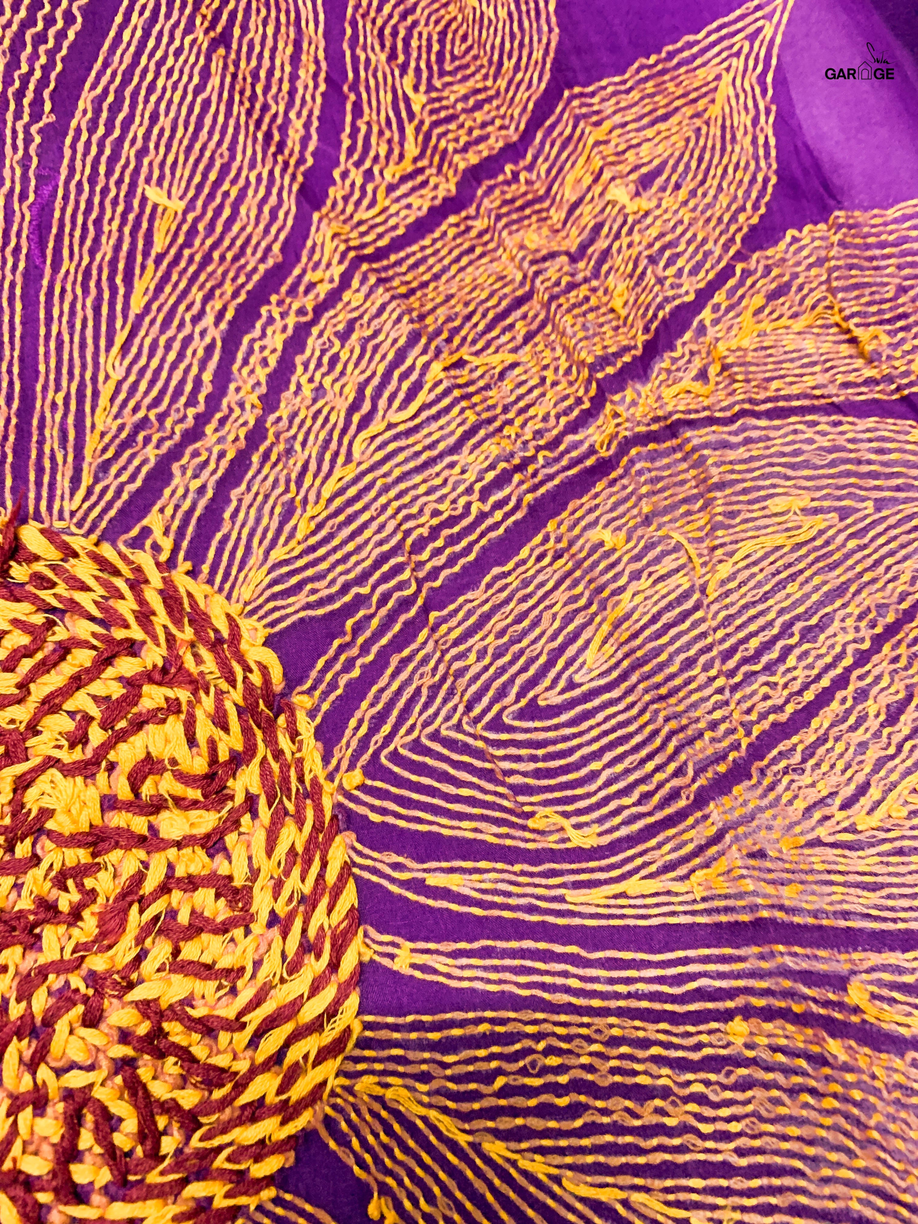 Light as air and translucent like a rainbow, organza silk is a fabric that exudes delicate grandeur. Woven with twisted silk yarn on the warp as well as the weft, this fabric is hailed for its slight transparency and its slightly stiff and yet fluid texture. The slight sheen adds to its charisma, making it the perfect saree to drape for both festive and formal occasions.