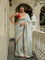 Imagine styling yourself in the mesmerizing Aasmani Mehfil Saree in light blue, crafted with a cotton slub fabric that’s lightweight yet rich. Perfect for celebrations, this festive saree features a red and gold border with intricate zari details and zari stripes throughout the saree.