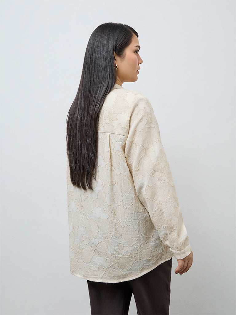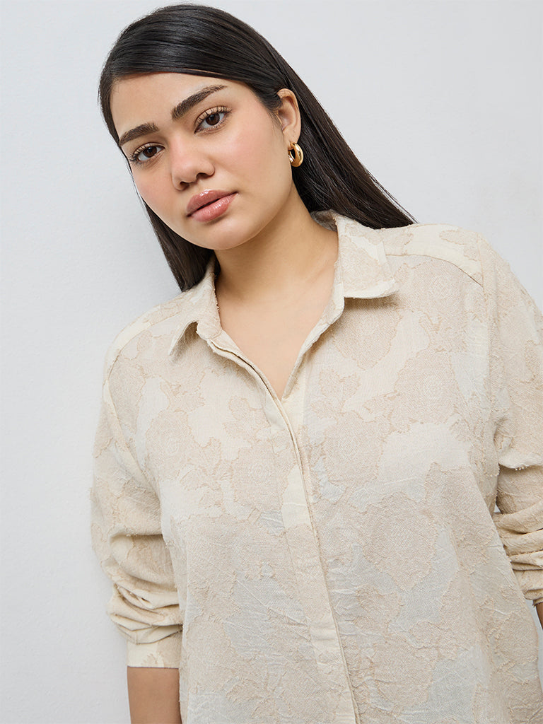 Gia Beige Floral Embroidered Cotton Shirt