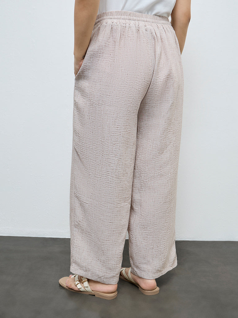 Gia Beige Textured High-Rise Pants
