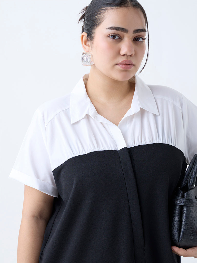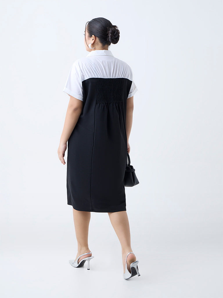 Gia Black Colour-Blocked A-Line Dress