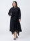 Gia brings this black top crafted from a quality fabric for lasting comfort. It features a ribbed round neck and full sleeves, enhanced with subtle embellished detailing that lends a touch of elegance, a versatile pick for both casual and polished looks.
