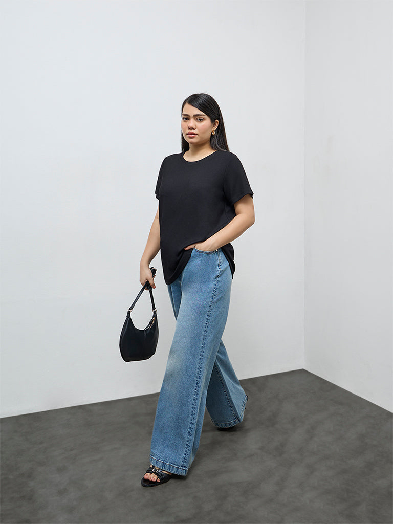 Keep it simple yet stylish with this black tee from Gia, crafted from a ribbed-textured fabric for added dimension. Finished with a classic crewneck and short sleeves, it’s an essential piece that anchors any off-duty look with ease.