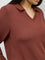 Gia Brown Ribbed-Textured T-Shirt