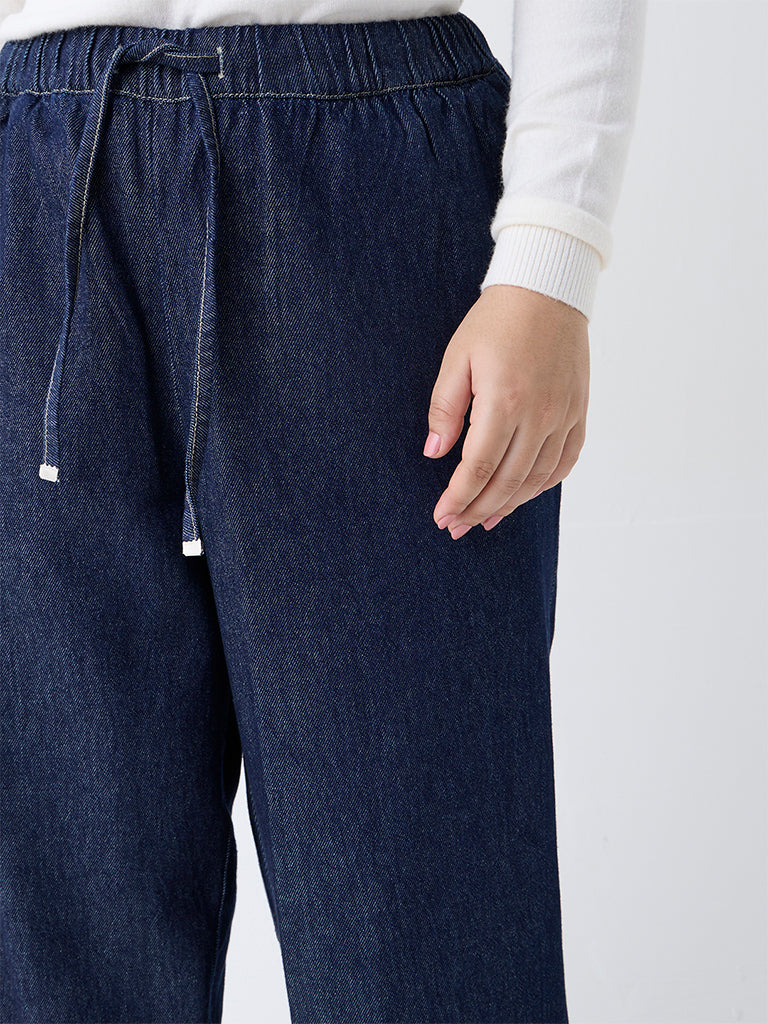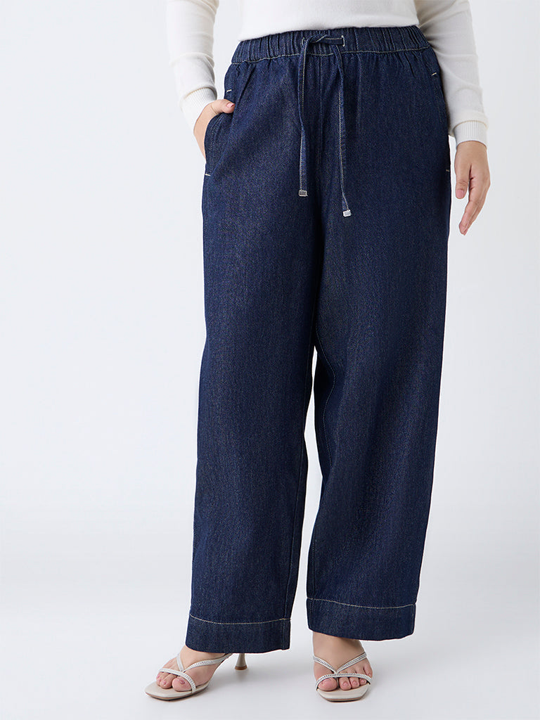 Designed with everyday ease in mind, these dark blue jeans by Gia are shaped in a straight-leg silhouette that feels relaxed yet flattering. Made from pure cotton for breathable comfort, they feature an elasticated drawstring waistband that adapts to your shape throughout the day. Side pockets add practical utility, making them a go-to pair for women who love denim that moves with them.