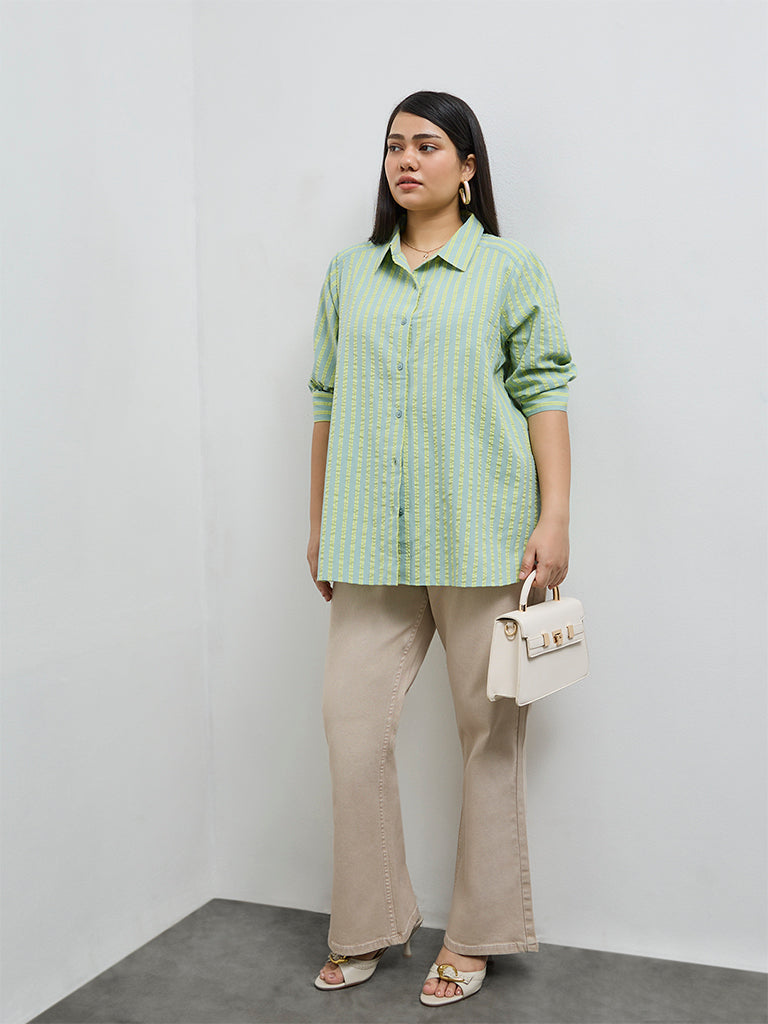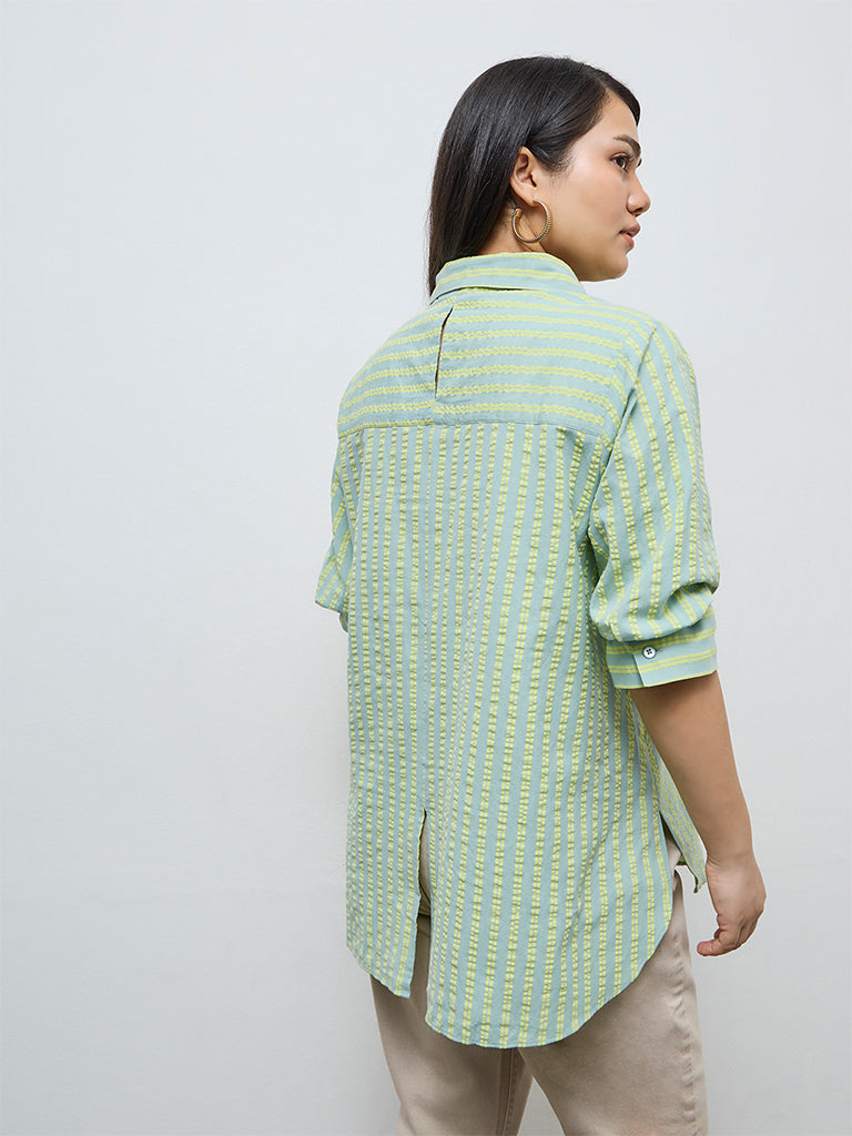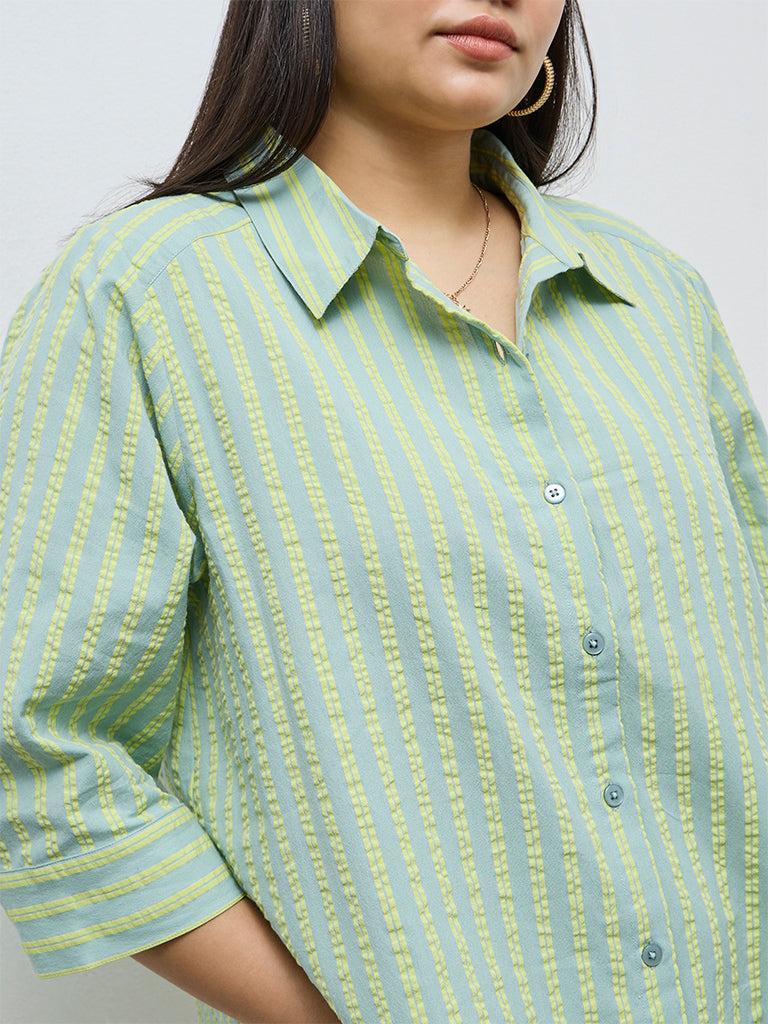 Gia Mint Seersucker Striped Cotton Shirt