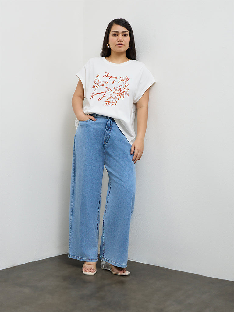 Gia White Printed Cotton T-Shirt