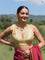 The model is wearing a size S blouse and the saree is Dipped in Wine.