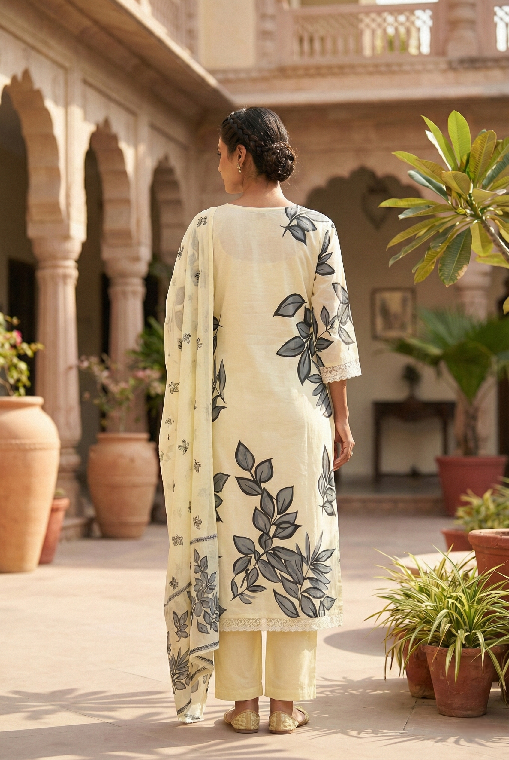 Elevate your ethnic wardrobe with this stunning three-piece set, meticulously crafted from premium grey cotton. Each piece features intricate beadwork and sequin embroidery that catches the light beautifully, adding sophistication to any occasion. The thoughtfully coordinated ensemble offers versatility—wear the pieces together for a complete look or mix and match for endless styling possibilities. Perfect for weddings, festivals, or special celebrations, this set combines traditional craftsmanship with contemporary elegance. The breathable cotton fabric ensures comfort throughout the day, while the detailed embellishments make a lasting impression. Invest in timeless style that celebrates artistry and quality.