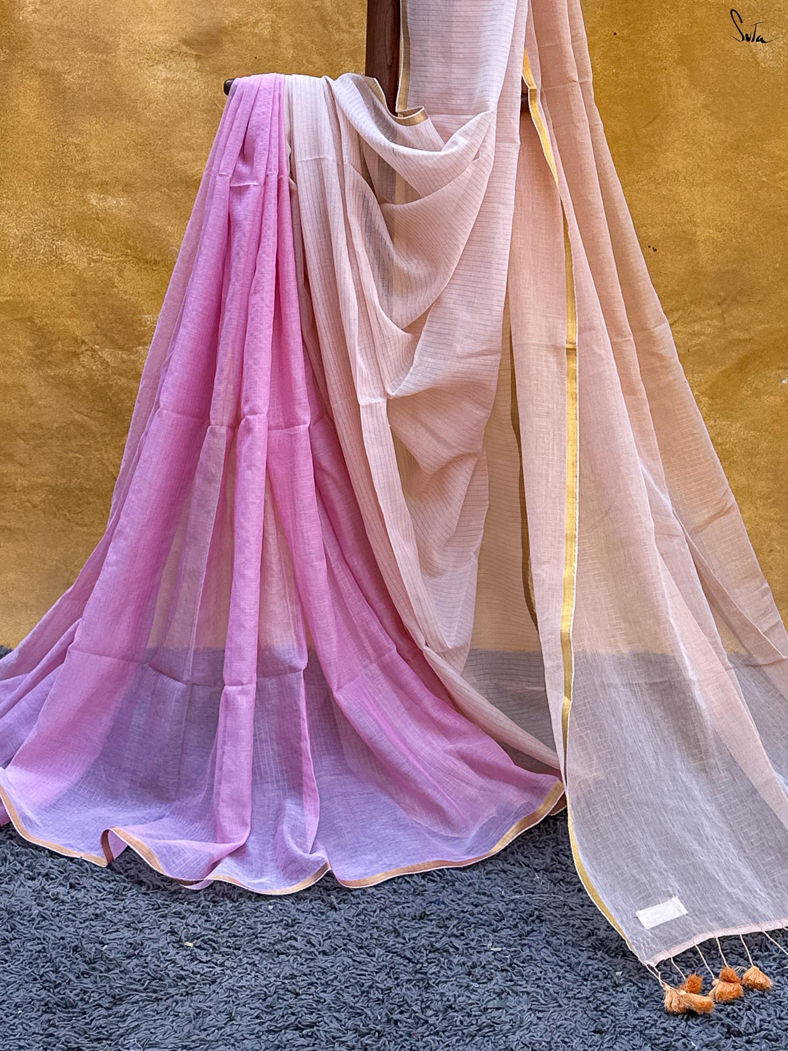 The mul cotton is what we call ˜made in heaven at Suta. Known in West Bengal as mul mul, the fabric is buttery soft and delicately beautiful. The weave of this fabric is very fine, and this lends a very fluid texture to it that makes draping it a breeze. It is truly like a hug that wraps you in its love!