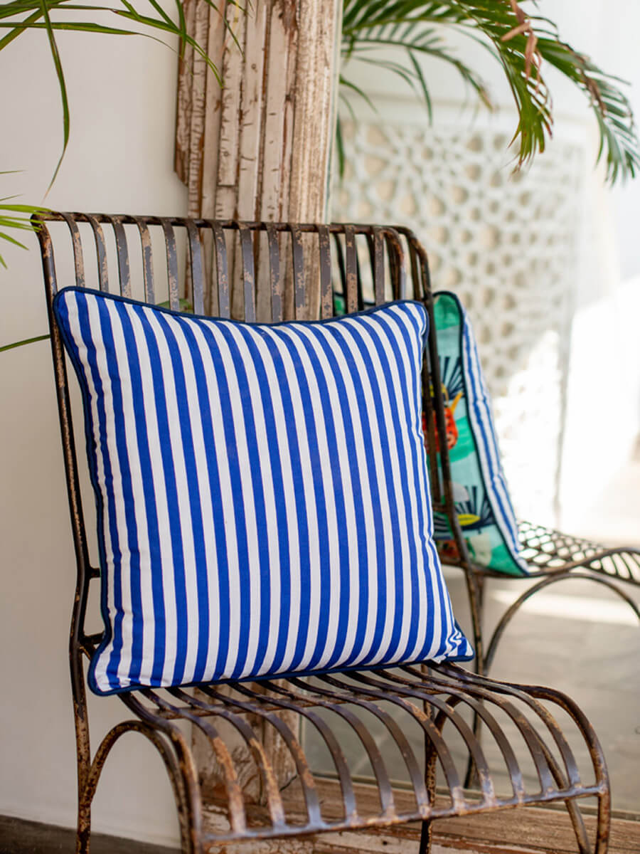 Inspired from the Far East, this collection showcases traditional life and culture using modern colors, accents, and patterns. Crafted in cotton canvas, accented with contrasting rope piping, and secured with a concealed zip. We recommend teaming it up with other cushion covers from this collection.