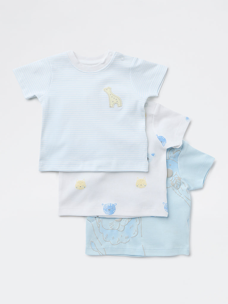 HOP Baby Boys Blue Printed Cotton T-Shirt - Pack of 3