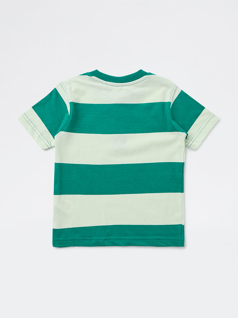 HOP Kids Boys Green Colour Block Cotton T-Shirt