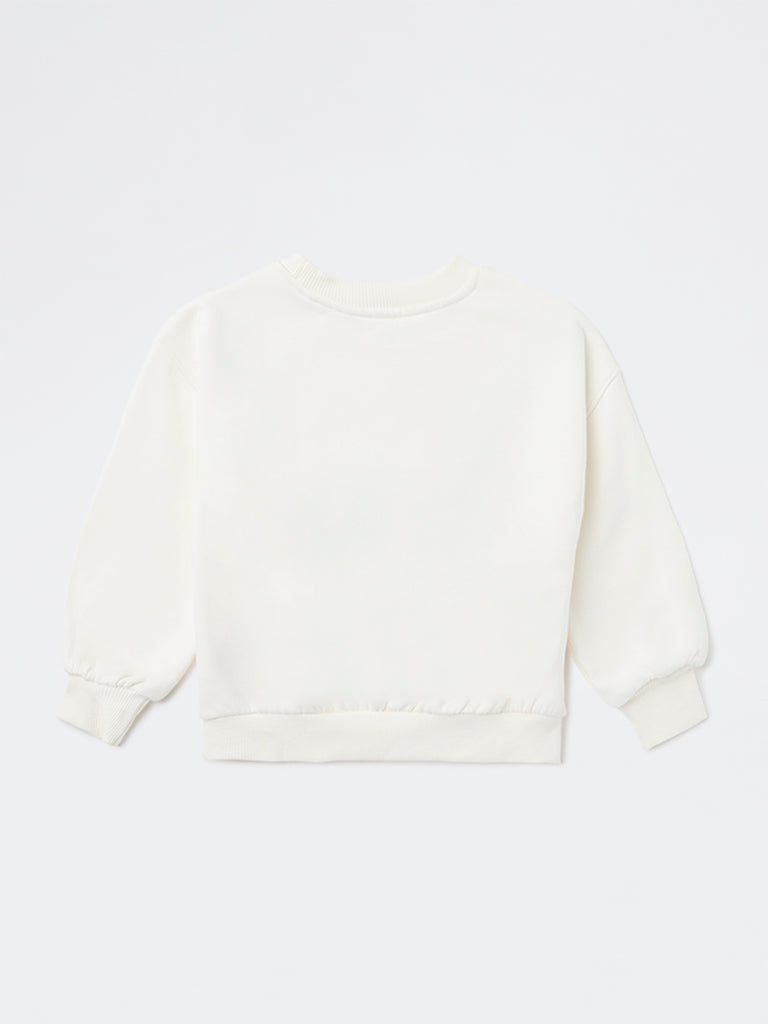 HOP Kids Girls White Embroidered Cotton-Blend Sweatshirt