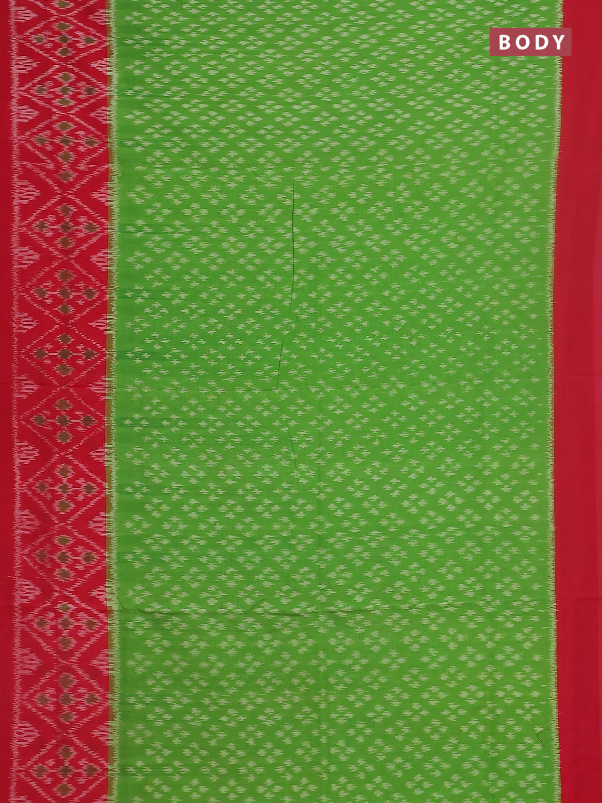 Ikat cotton saree light green and pink with allover ikat butta weaves and long ikat style border