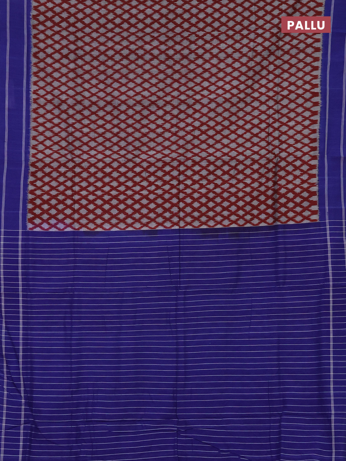 Ikat cotton saree maroon grey and blue with allover ikat butta weaves and rettapet border