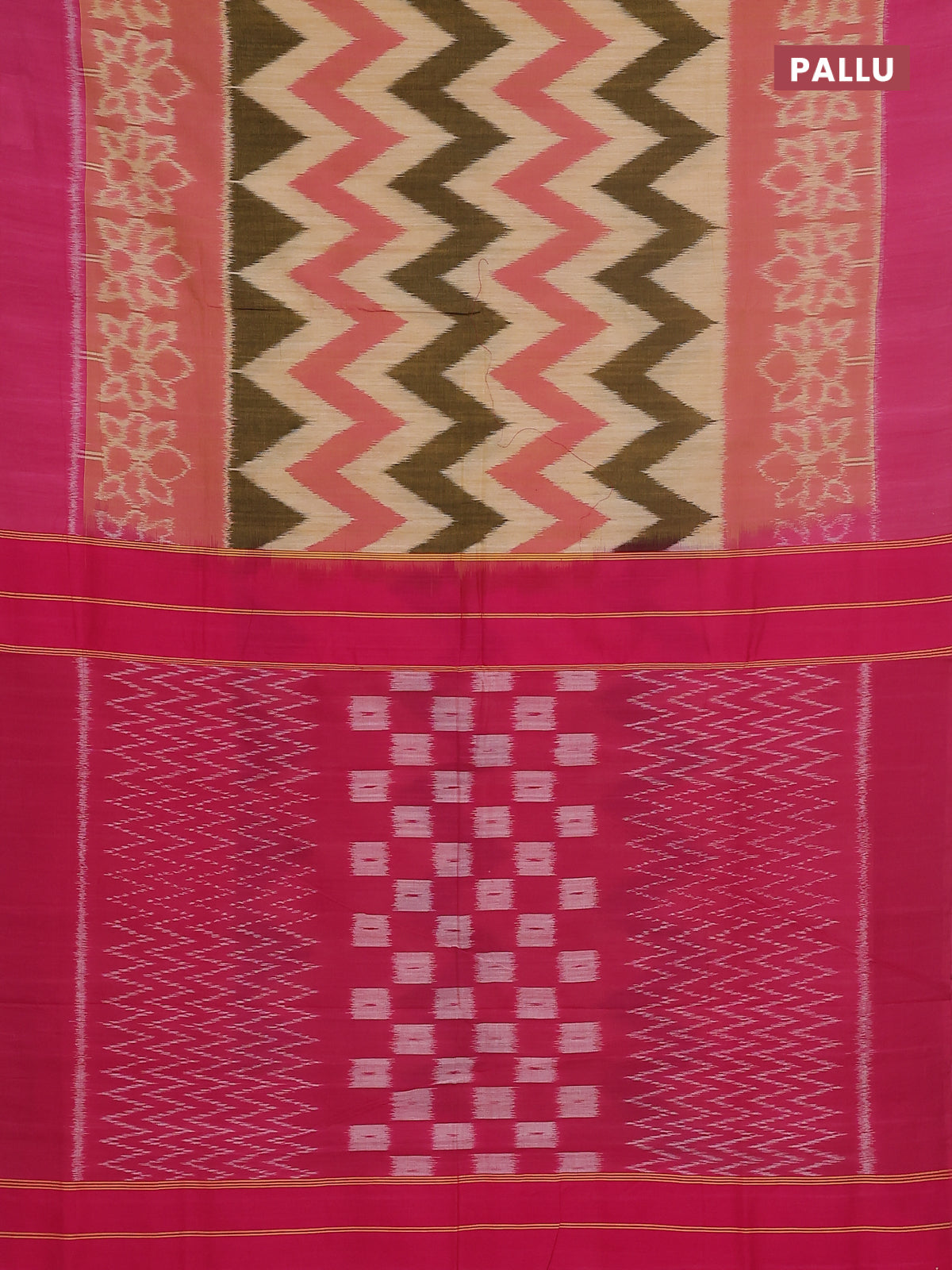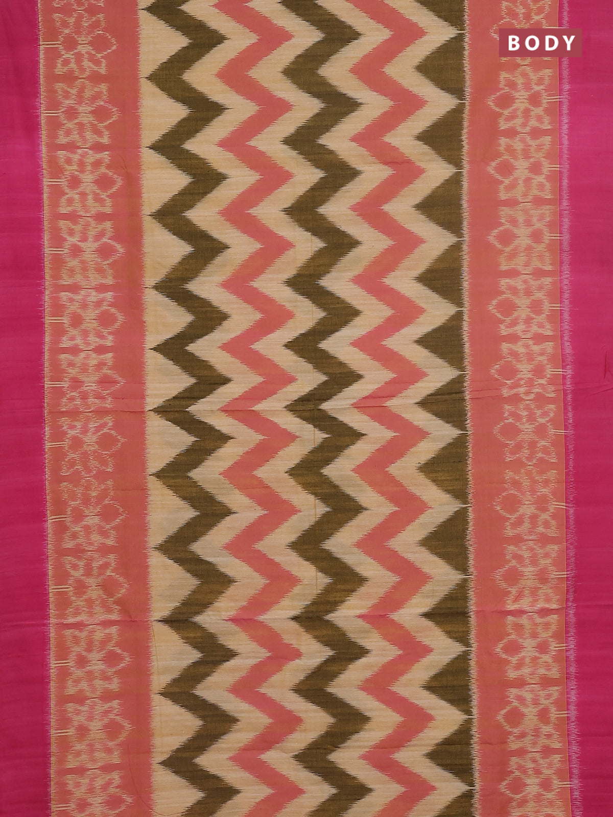 Ikat cotton saree sandal and pink with allover zig zag weaves and simple border