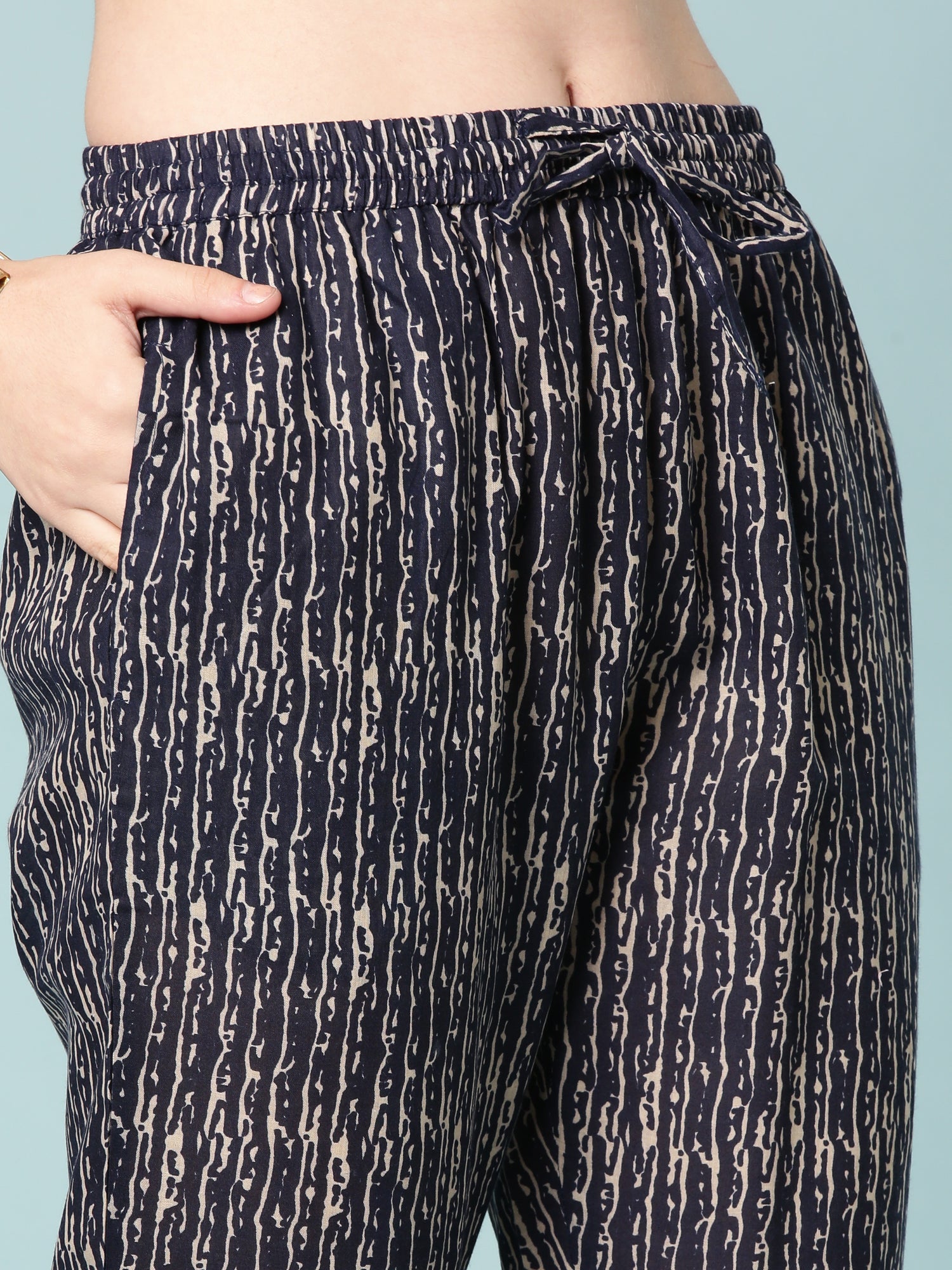 Embrace timeless elegance with this stunning three-piece ensemble in luxurious modal silk. The rich indigo blue base showcases an intricate floral digital print that brings sophistication to your wardrobe. Modal silk's breathable, soft texture ensures comfort throughout the day while maintaining a graceful drape. Perfect for celebrations, gatherings, or elevating your everyday style, this versatile set combines traditional aesthetics with contemporary design. The coordinated pieces work beautifully together or separately, giving you endless styling possibilities. Discover the perfect balance of comfort and refined beauty.