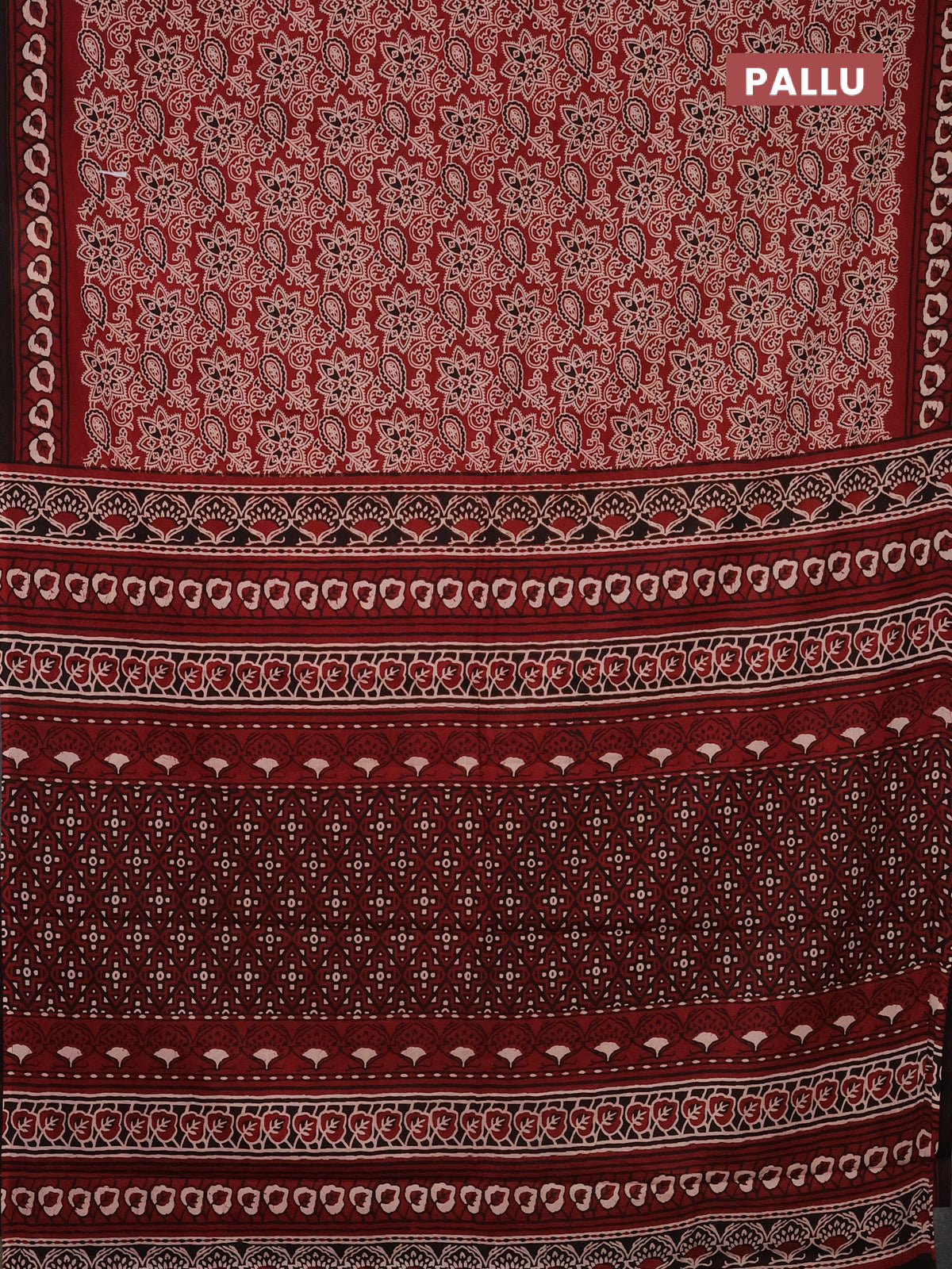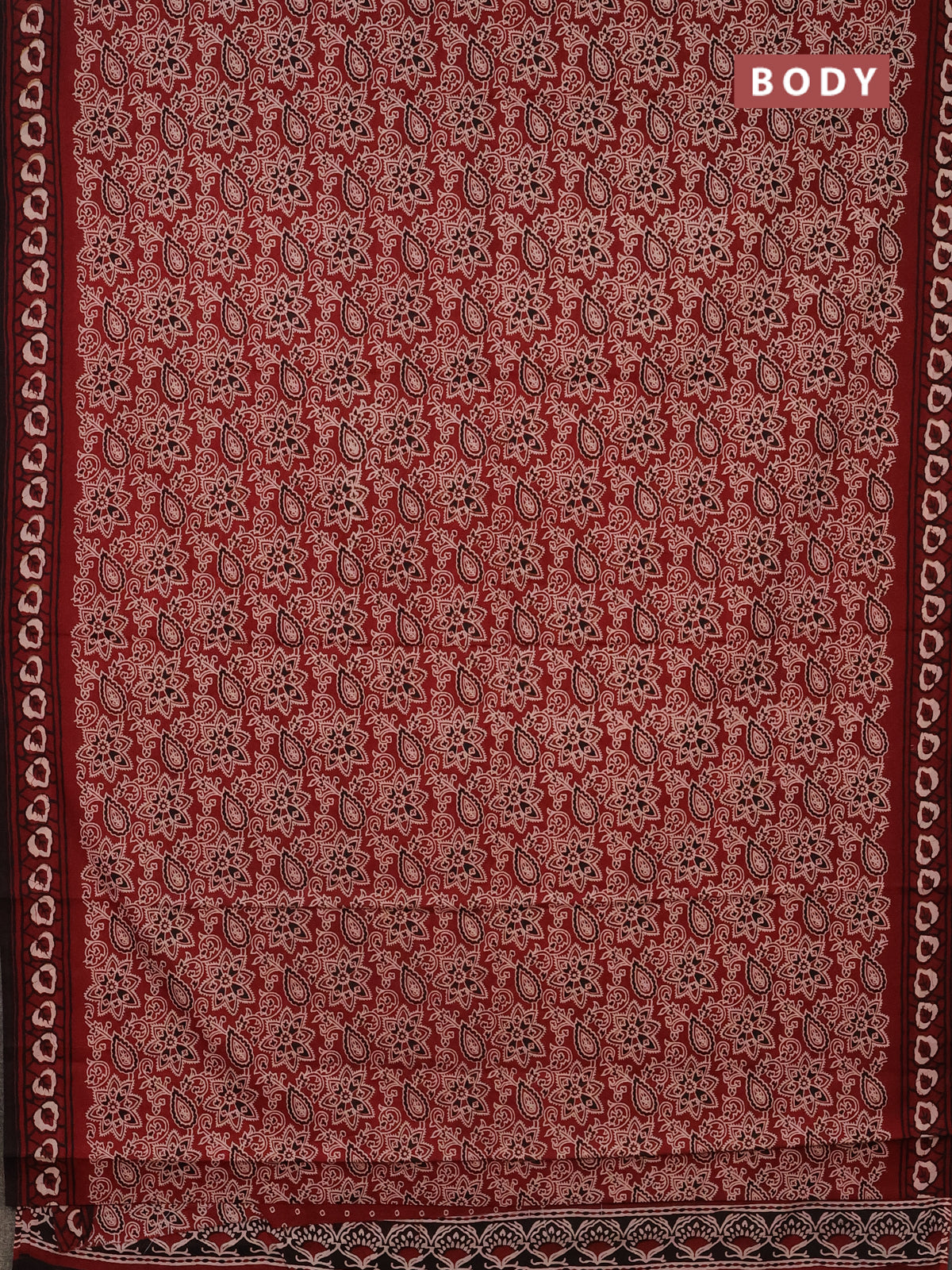 Jaipur cotton saree marron and black with allover kalamkari prints and printed border