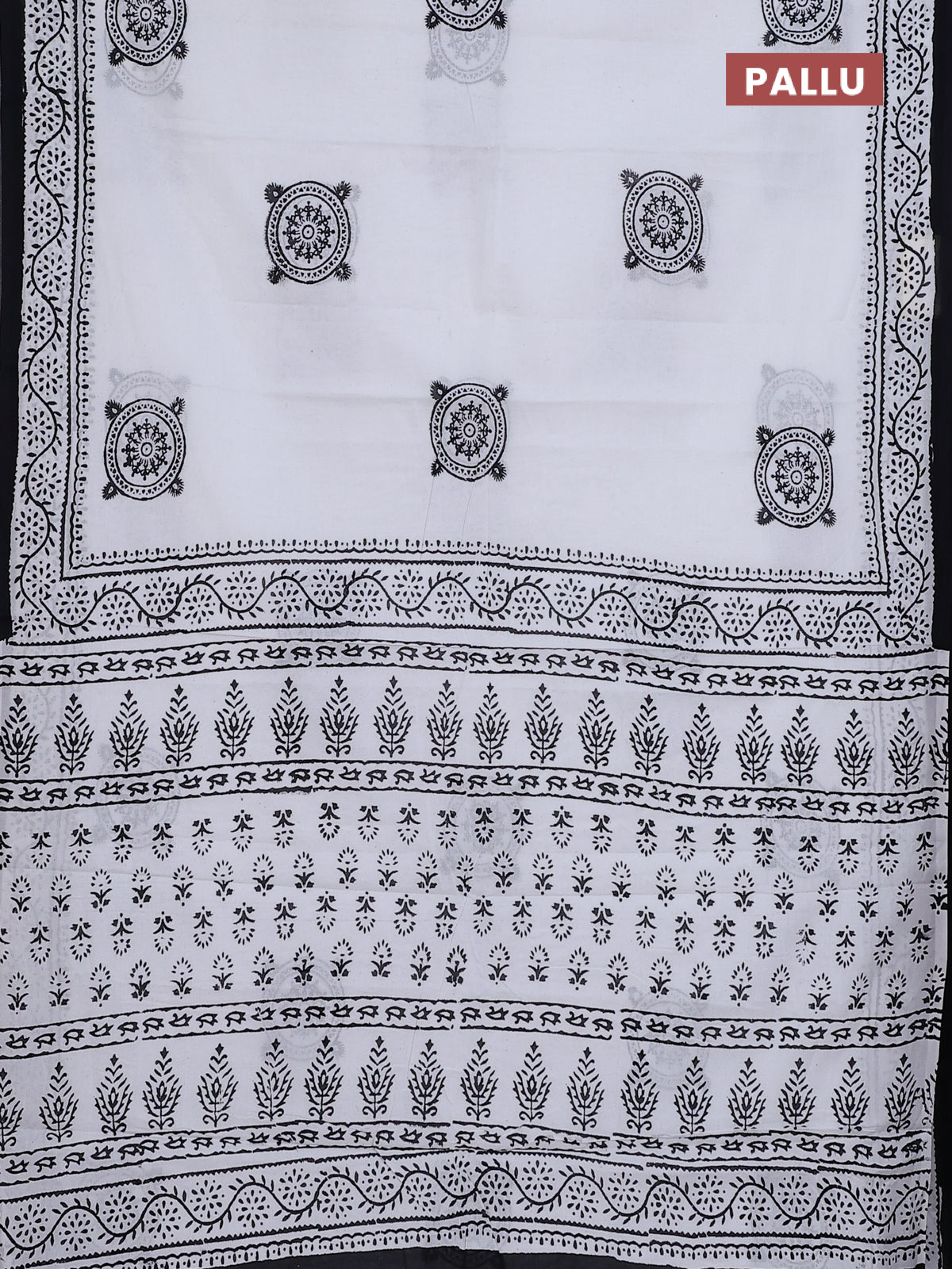 Jaipur cotton saree off white and black With Warli butta prints and printed border
