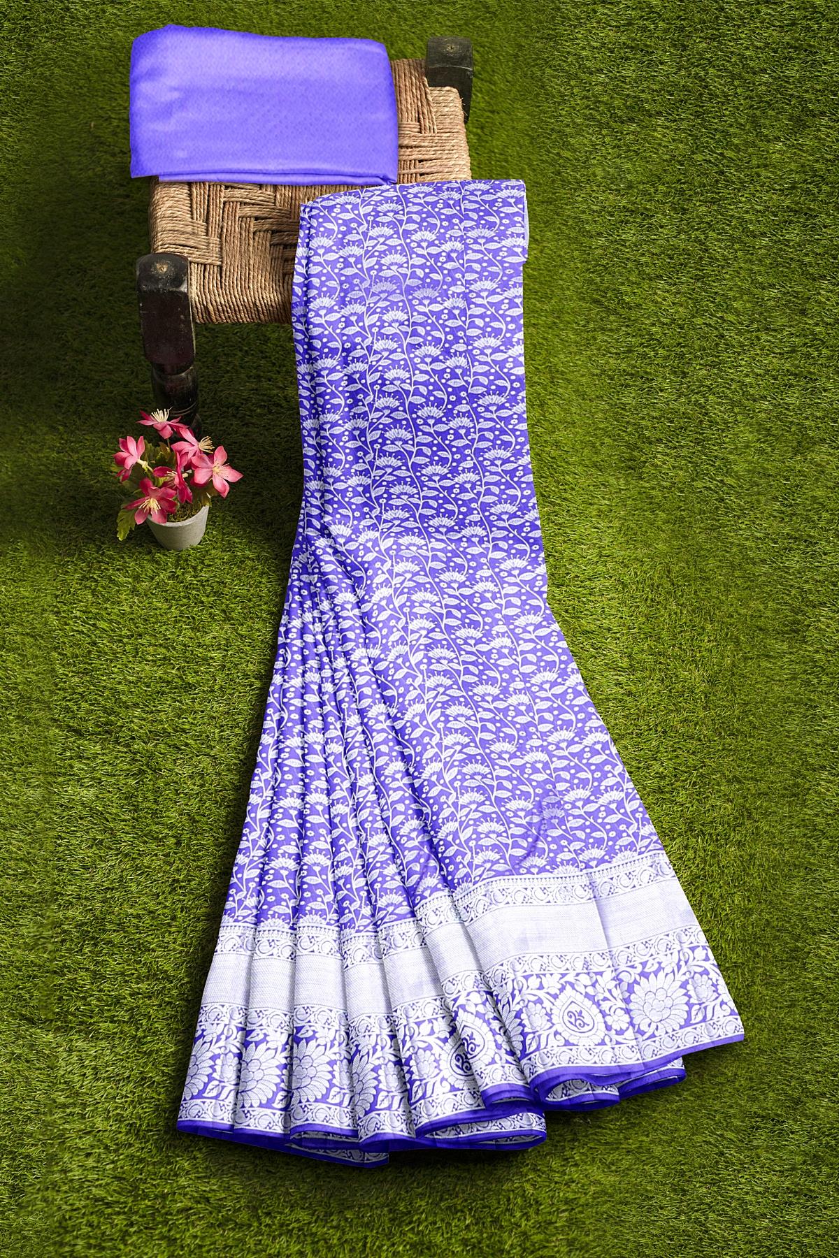 Latest LIGHT PURPLE FLORAL JAAL SILK BLEND Saree with SELF ZARI border. This saree comes with EMBOSE SILK BLEND blouse.