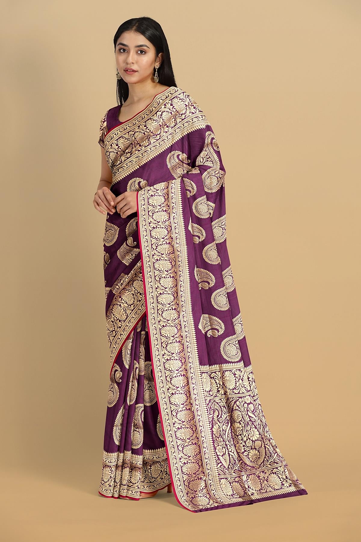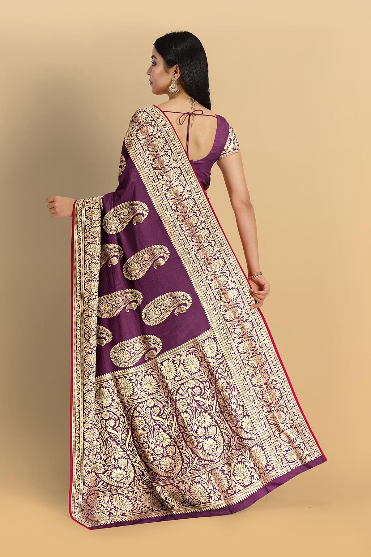 MAGENTA and GOLD BUTTIS SILK BLEND Saree with SEMI PATTU