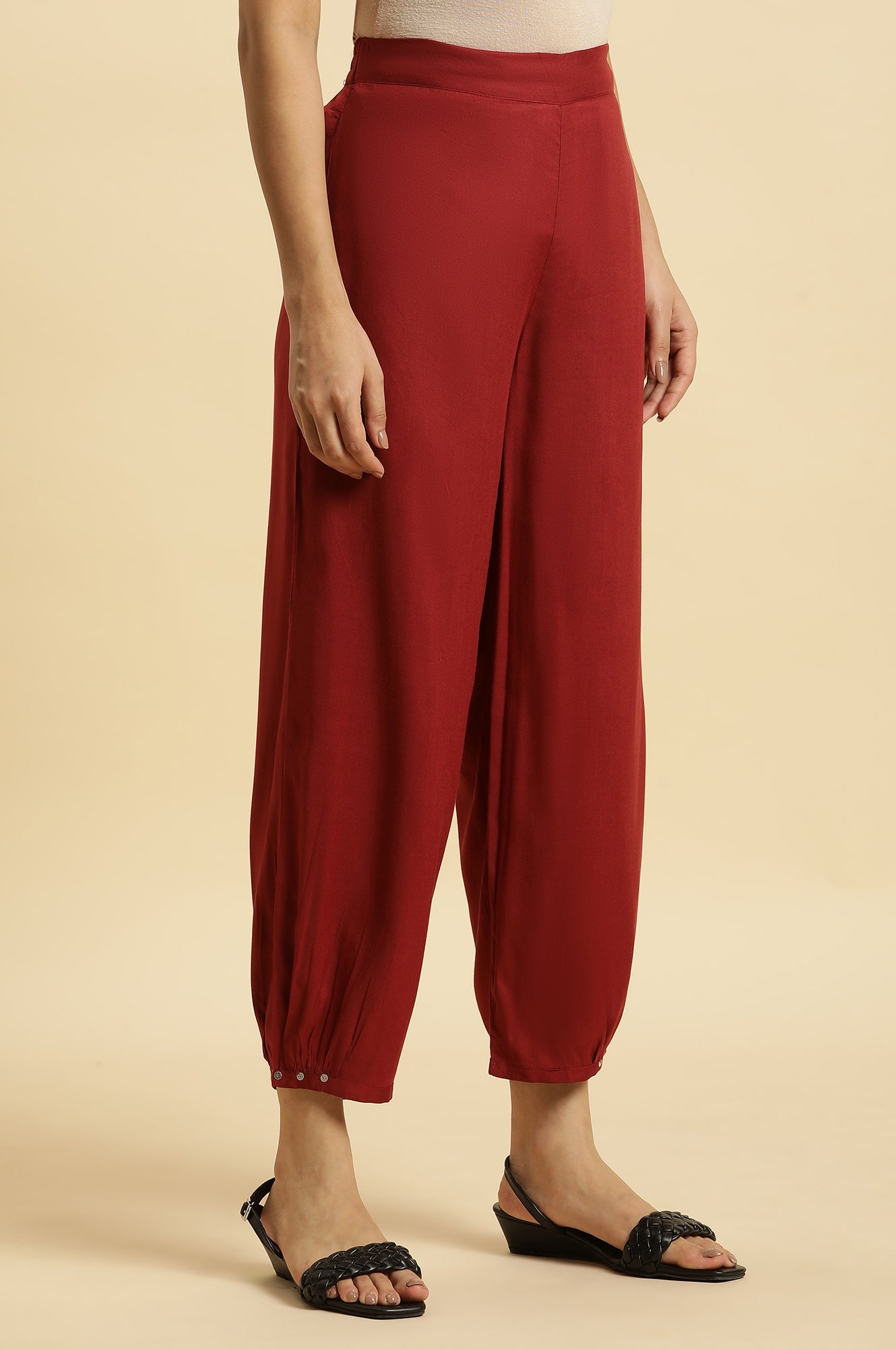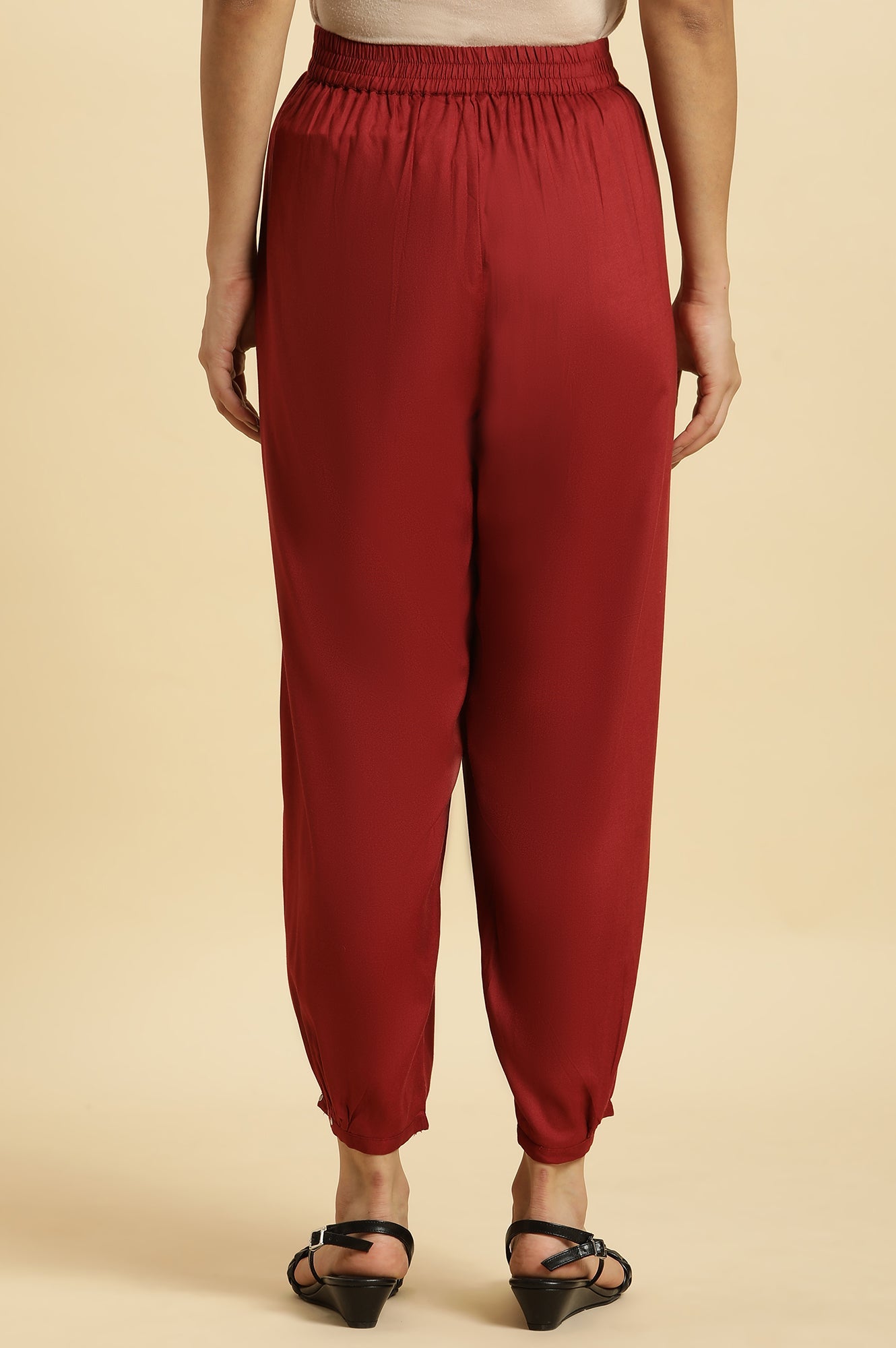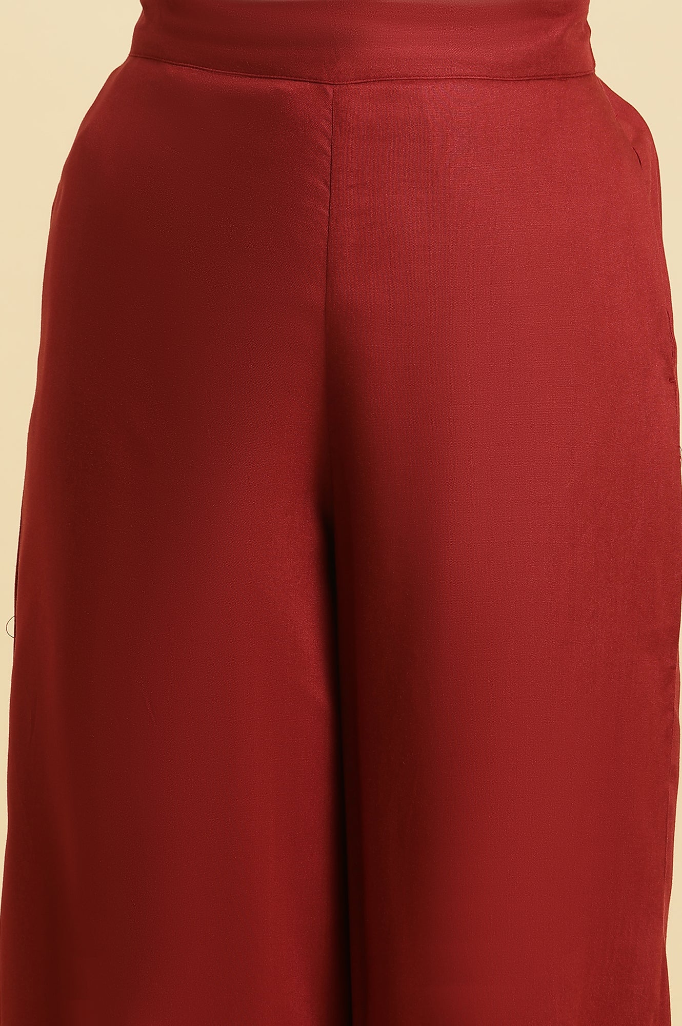 Effortlessly chic! This maroon kurta set for women features geometric prints and pintuck detailing on the yoke, paired with relaxed salwar pants. The kurta boasts a round neckline, three-quarter sleeves, and a flared silhouette, making it perfect for casual outings or festive gatherings. The elasticated waistband ensures comfort, while the straight hemline adds a touch of elegance. Crafted from woven rayon fabric, this set combines style and ease for a versatile ethnic look.