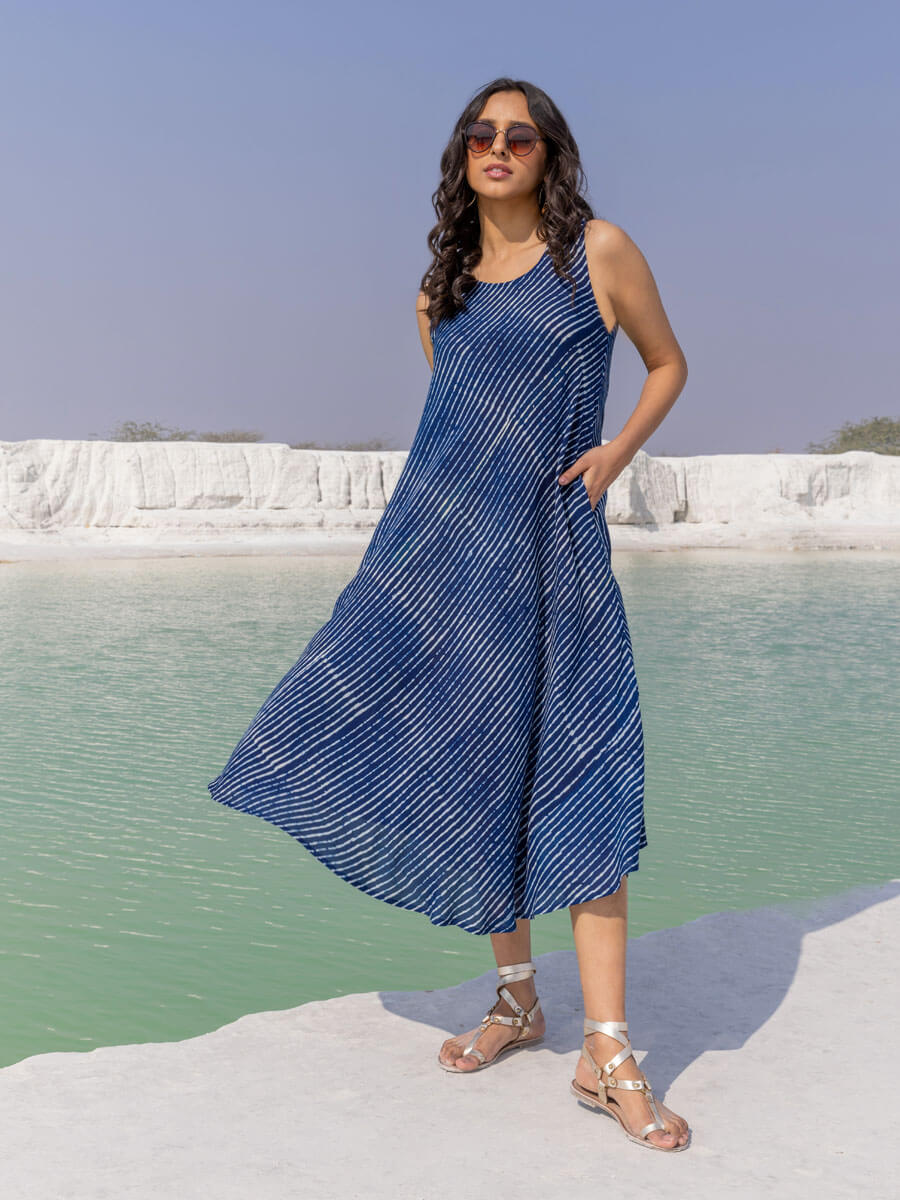 - Flowy modal indigo sleeveless long dress