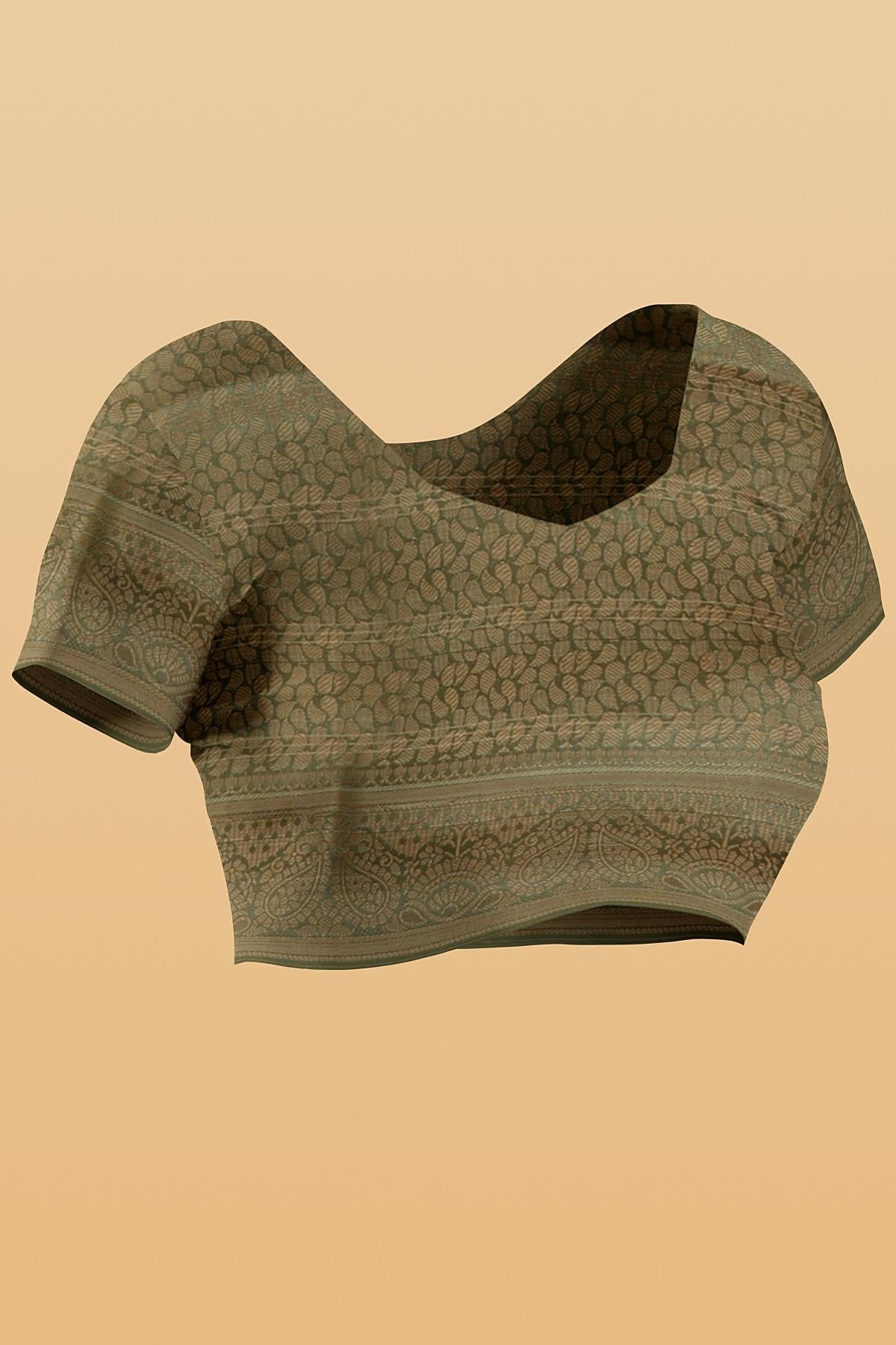 MULTI and OLIVE GREEN CHECKS & FLORALS TUSSAR SILK Saree with FANCY