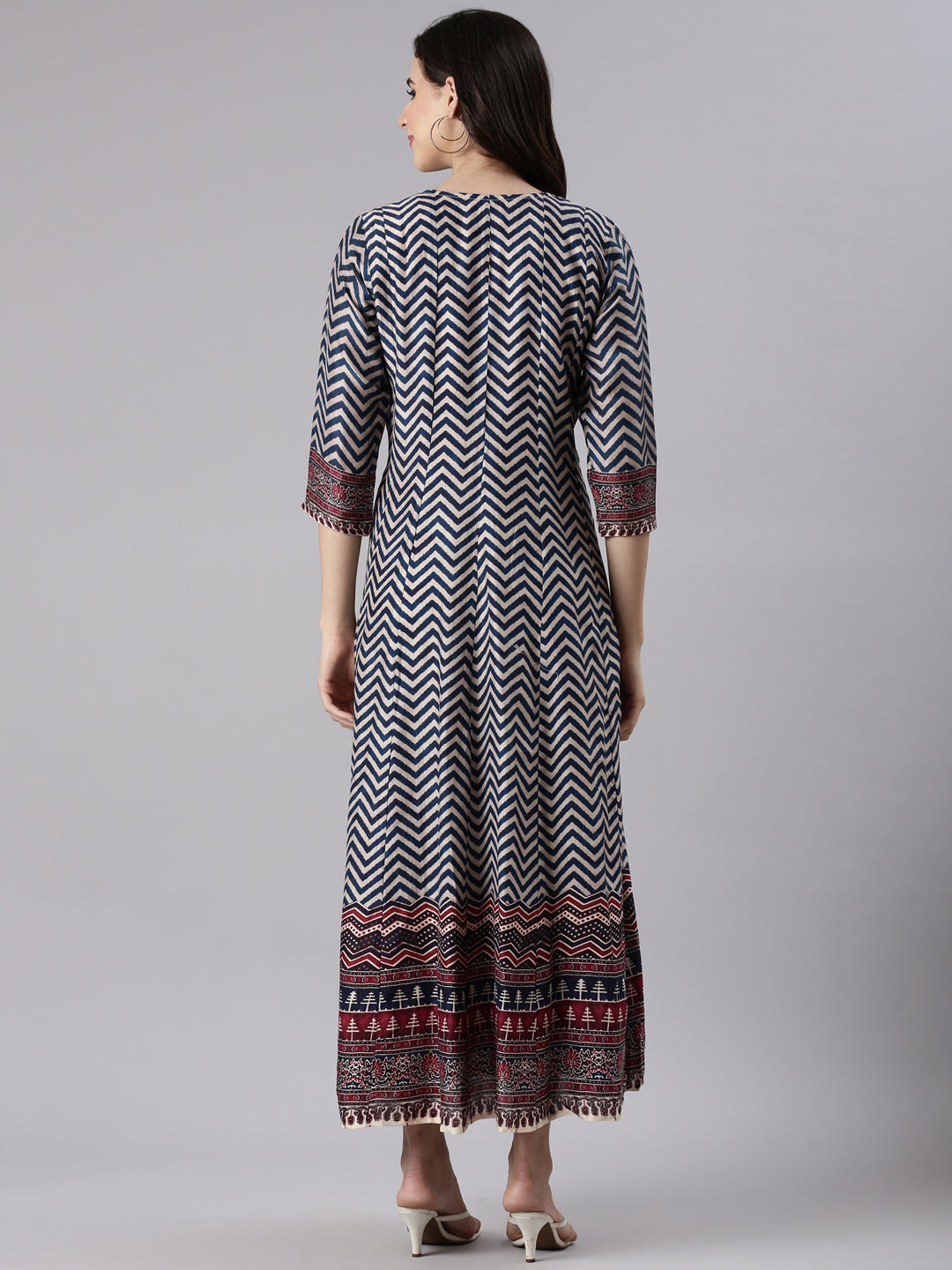 Navy Blue Silk Long Anarkali Kurta