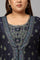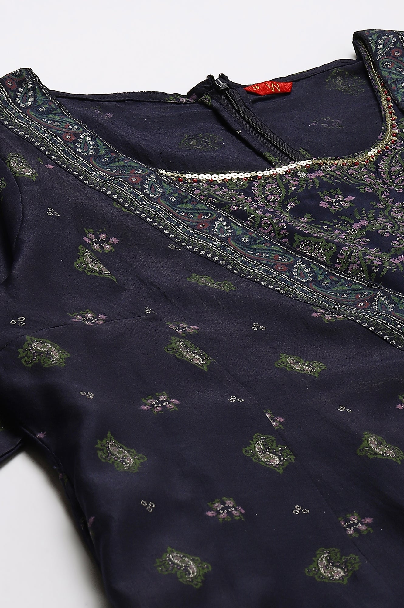 Navy Blue Paisley Printed Mock Layered Kimono Jumpsuit With Sequins And Beadwork Along The Neckline