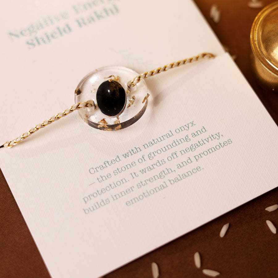 Tie this rakhi to your brother and shield him with the strength and protection of onyx this Raksha Bandhan.