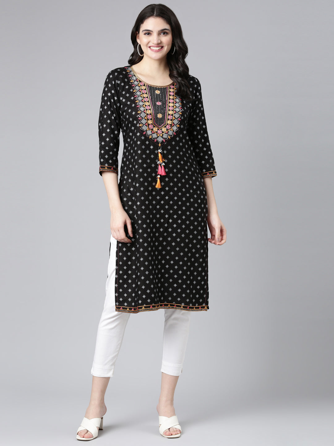 Neeru's Black Regular Straight Printed Kurta The Perfect Pick For A No-Fuss Yet Chic Look That'Ll Keep You Looking Good And Feeling Comfy. Get Ready To Turn Heads!