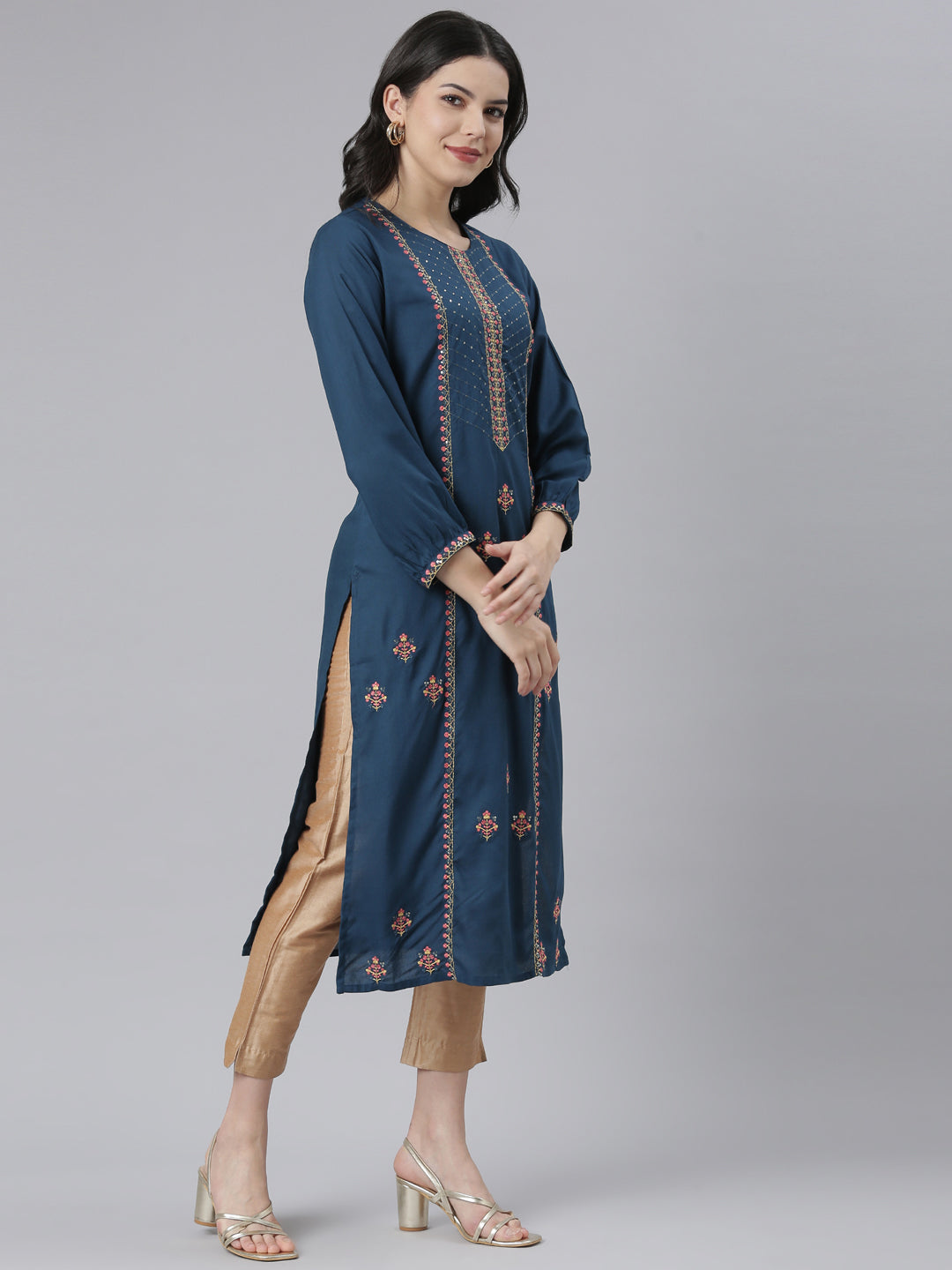 Indulge In The Luxury Of Neeru's Blue Floral Kurtas.