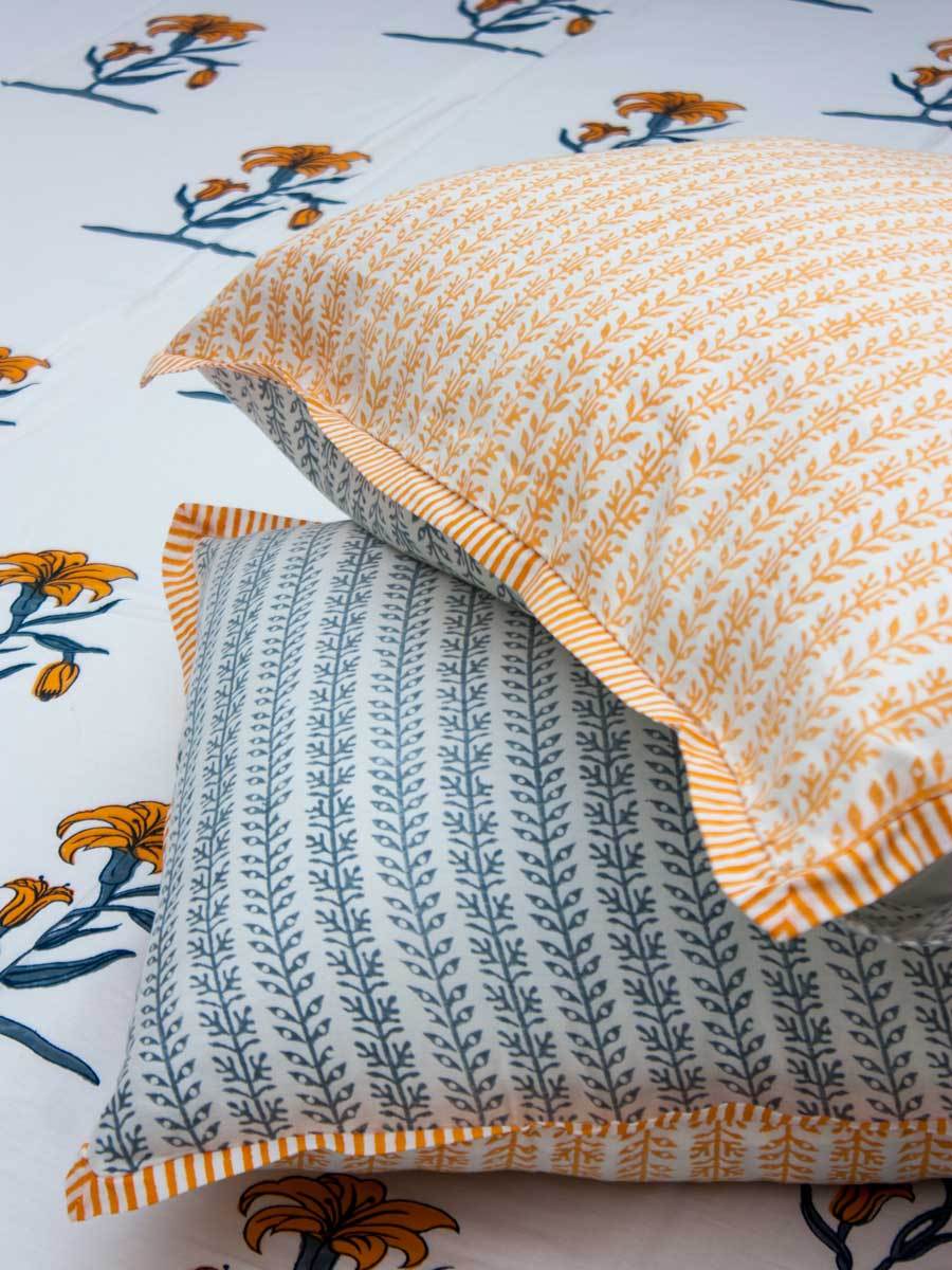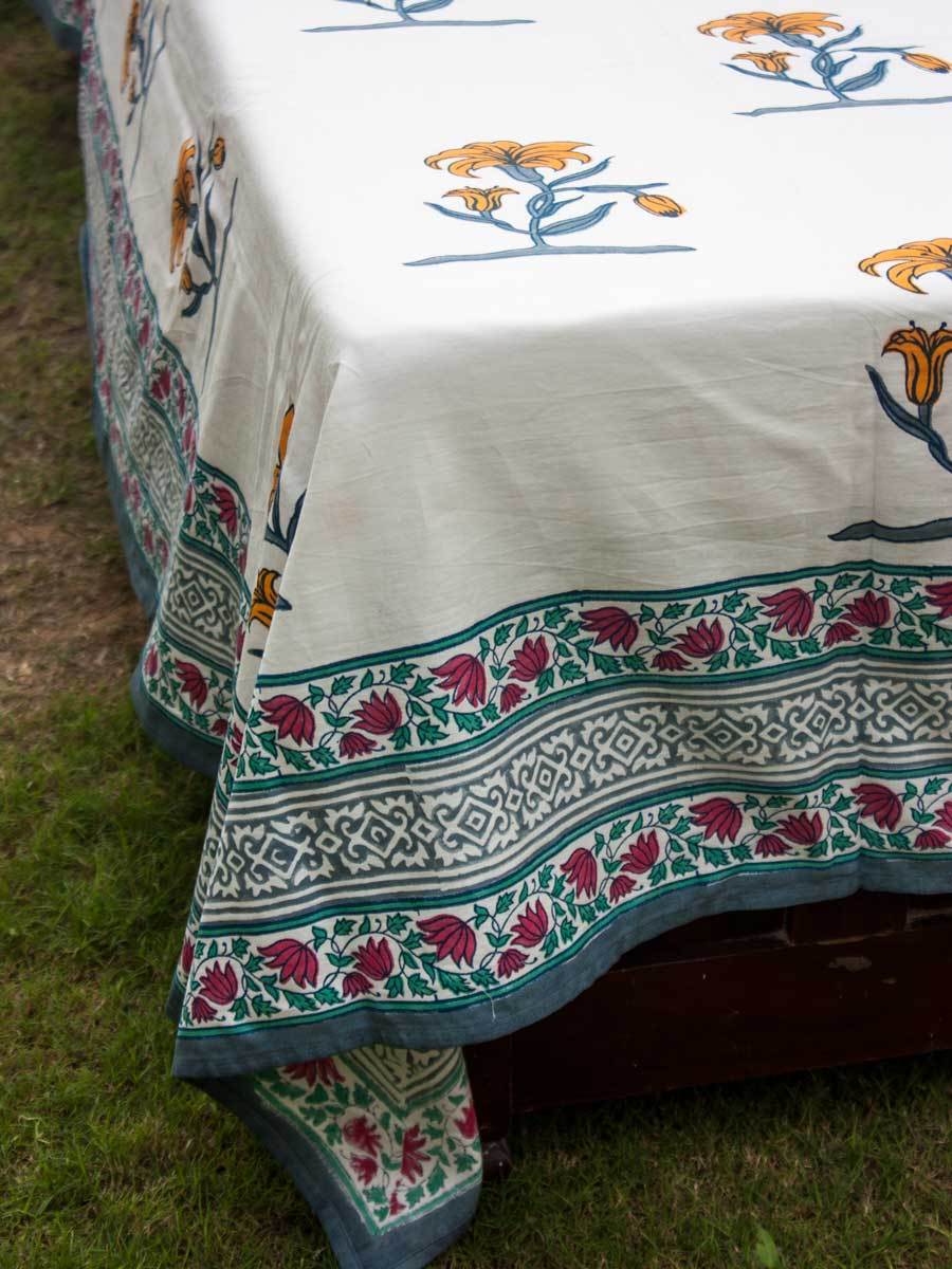 Pookalam Floral Block Printed Cotton Bedsheet
