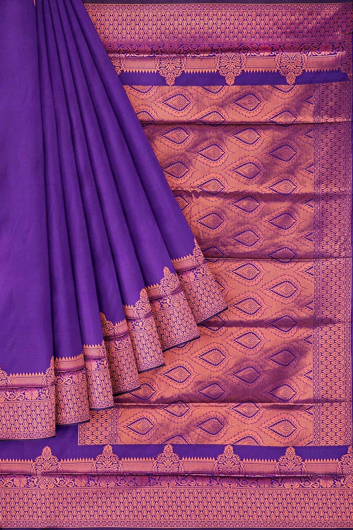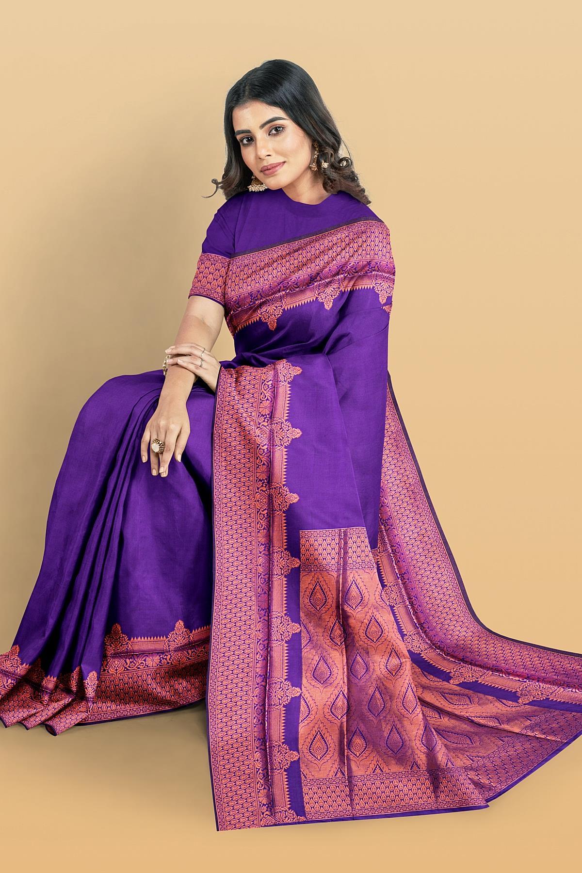 PURPLE and GOLD PLAIN SILK BLEND Saree with SEMI PATTU