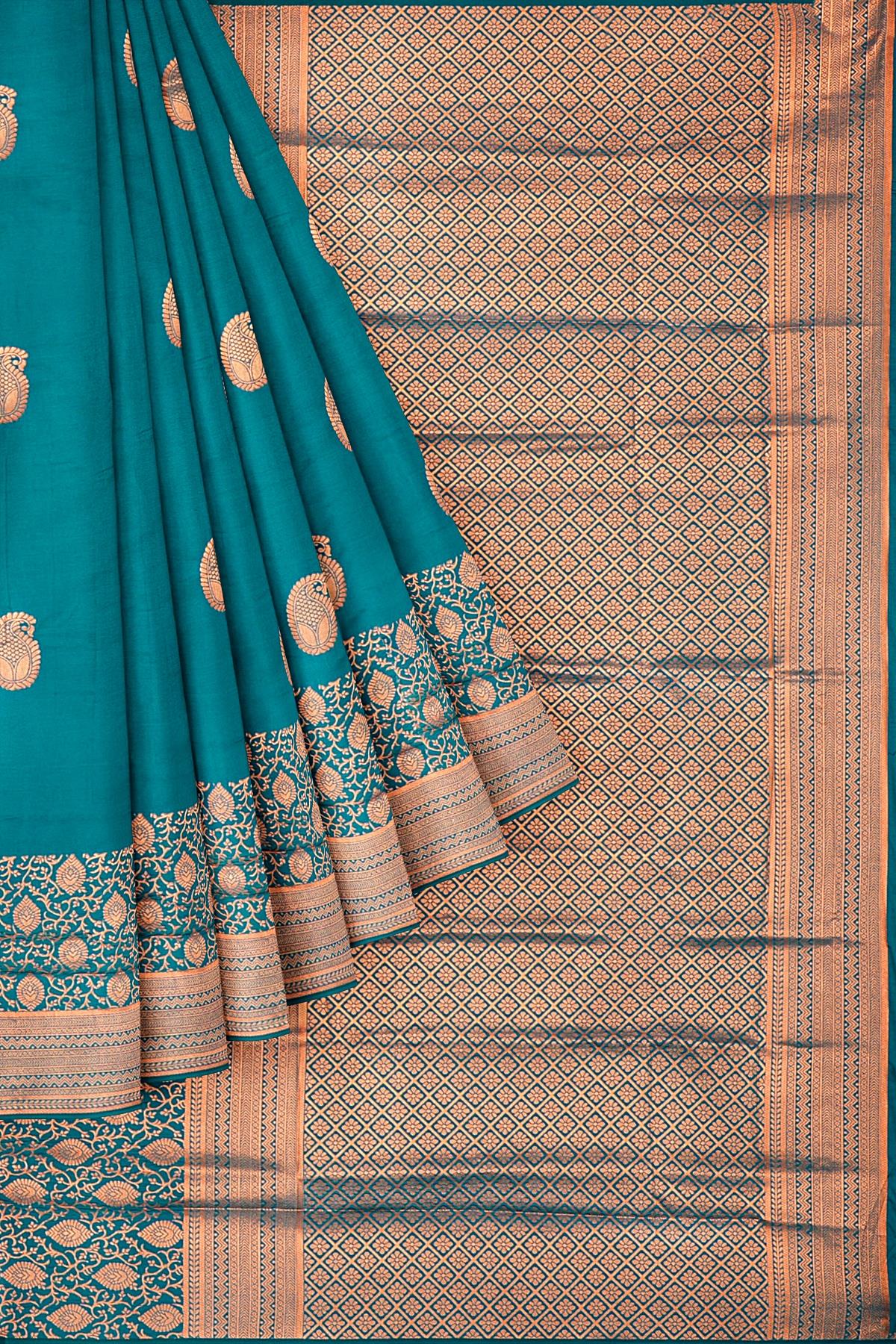 RAMA GREEN and GOLD BUTTIS SILK BLEND Saree with SEMI PATTU
