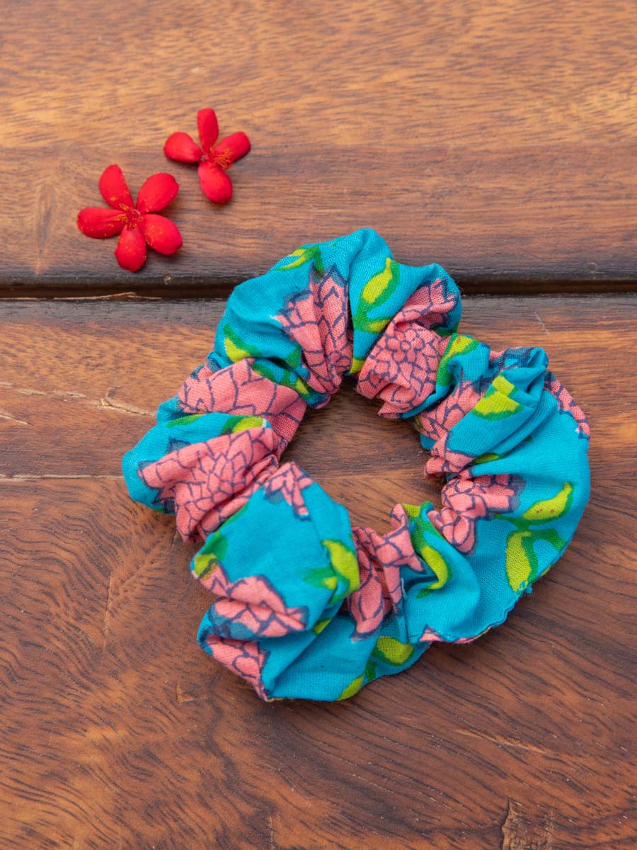 Set of 2 - Floral Turquoise Cotton Scrunchie