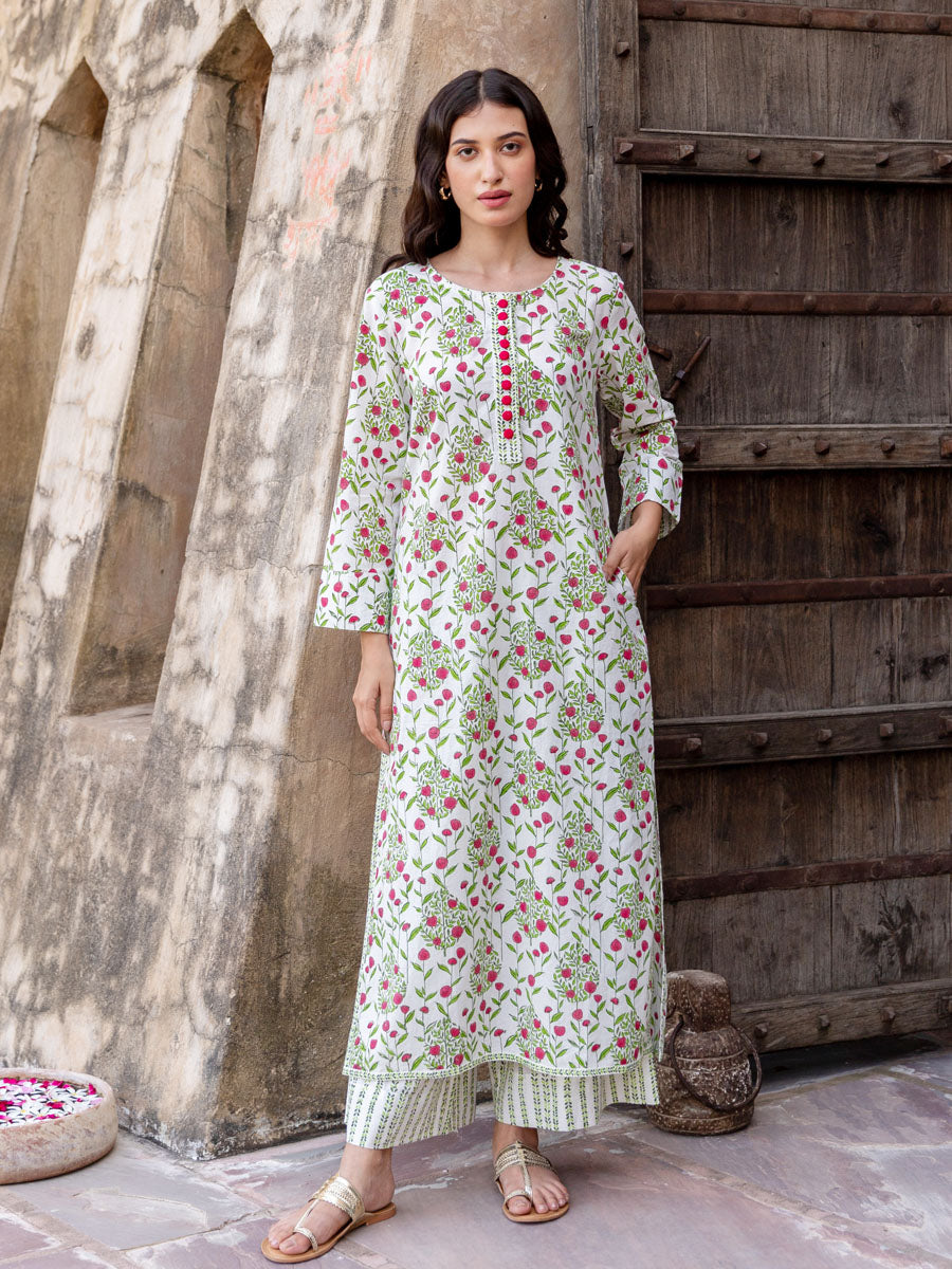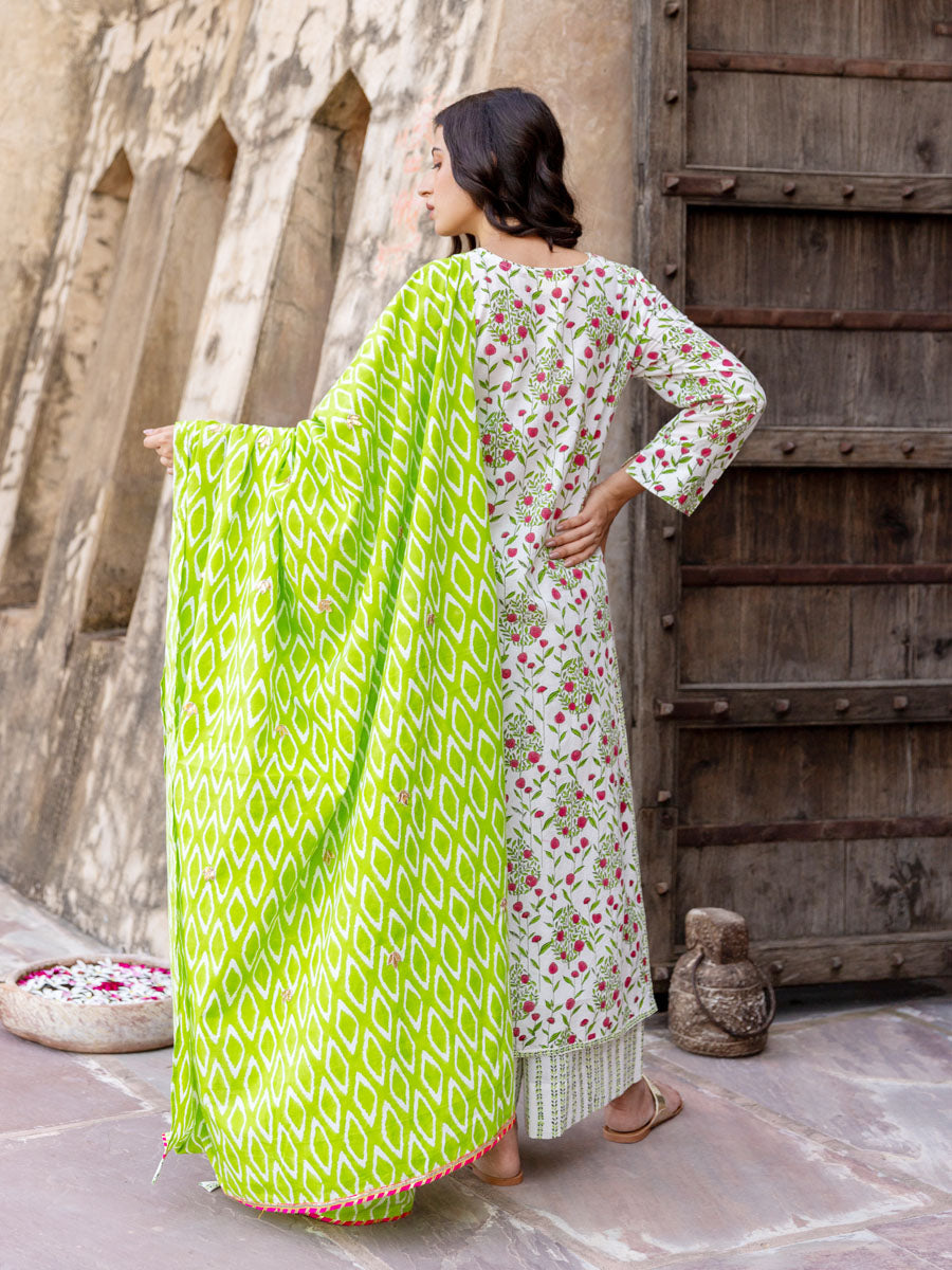 Set of 3 - Gulnaz Cotton Kurta, Palazzo and Dupatta