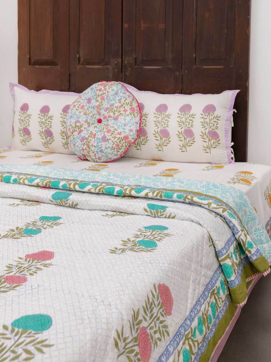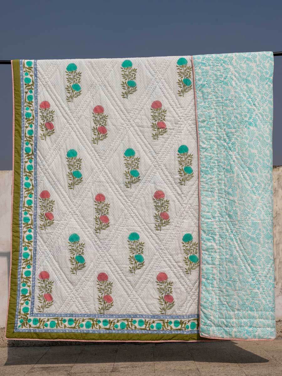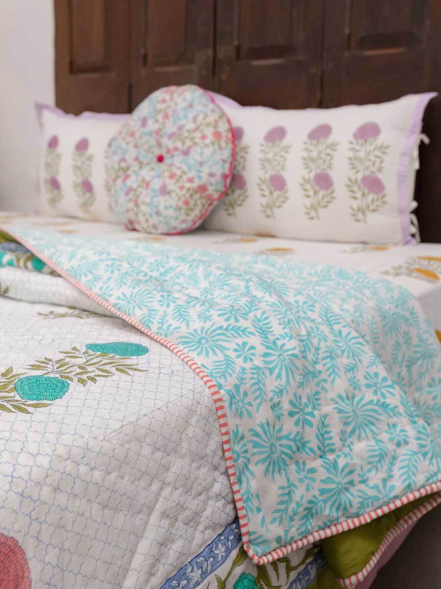 Comes in a fabric care bag. When not in use, fold neatly and store the quilt in the care bag. We suggest airing the quilt first time before use.
