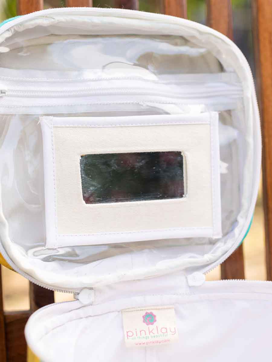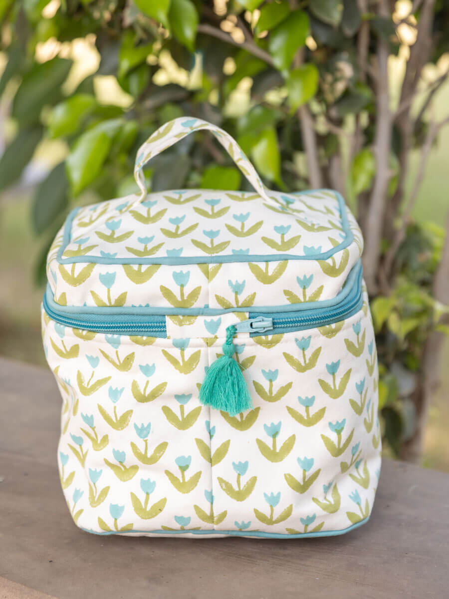 Tiny Tulip Block Printed Cotton Travel Vanity Case