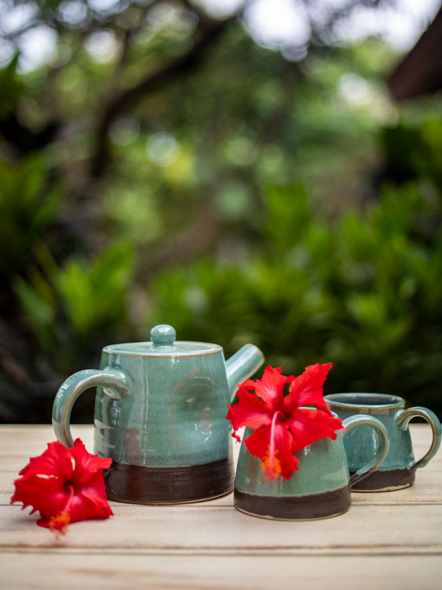 Turquoise Fall Hand-Thrown Dimpled Ceramic Tea Pot