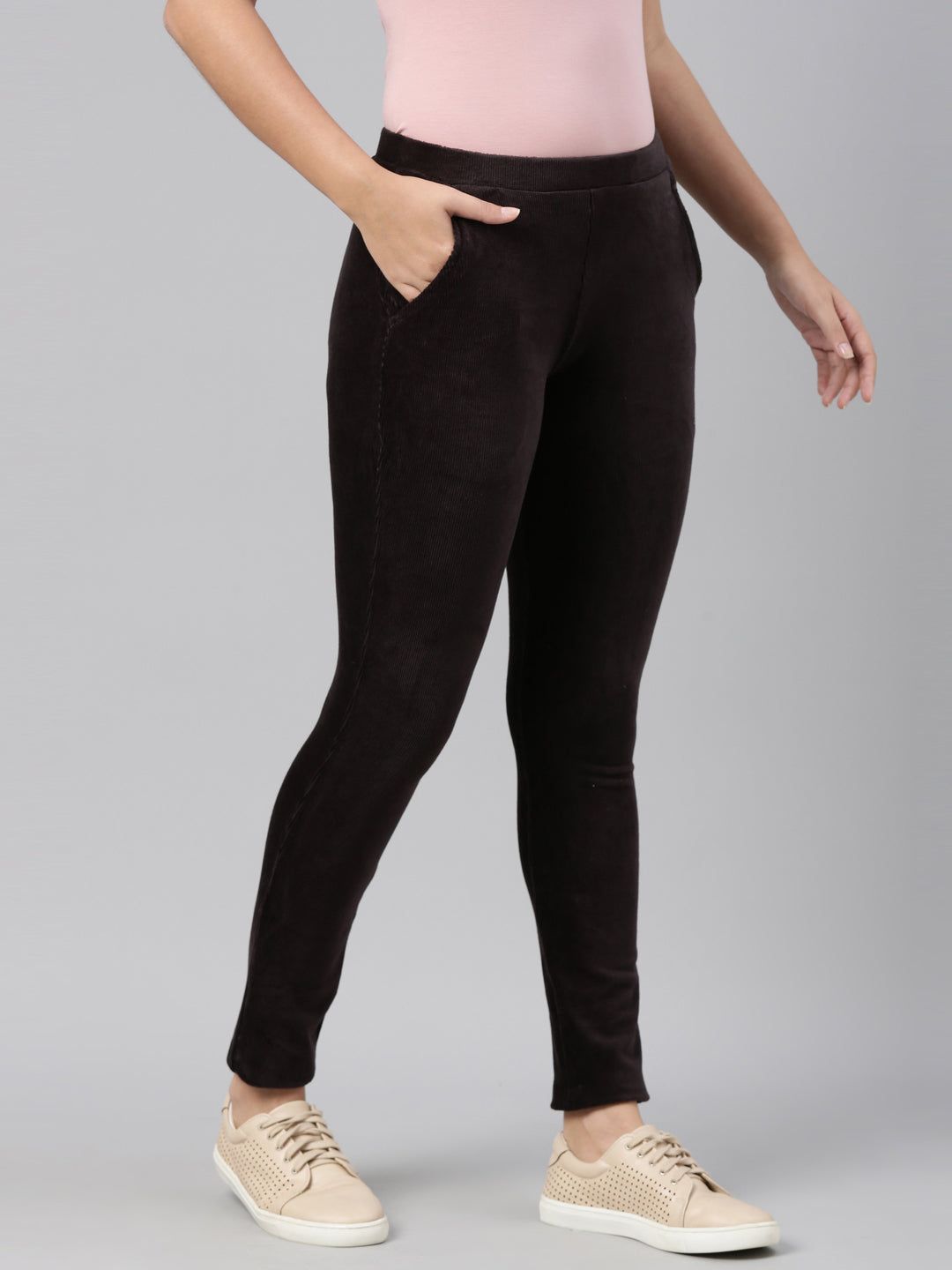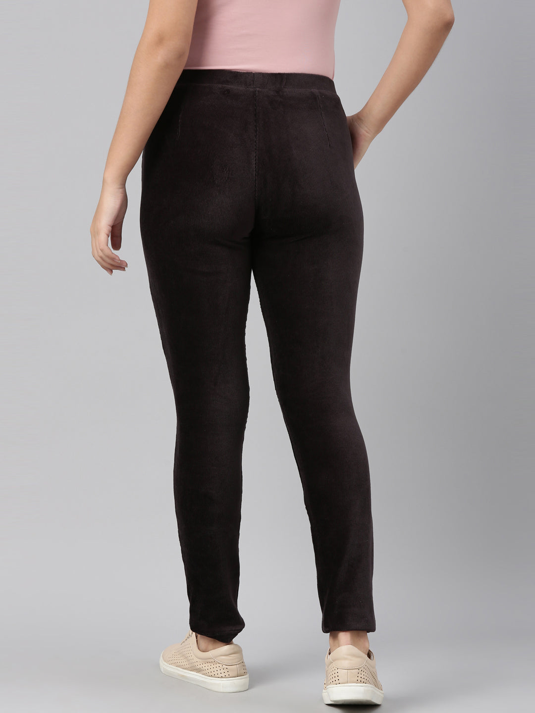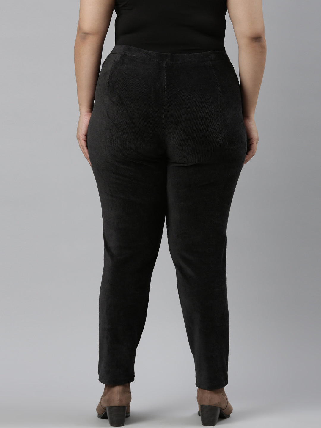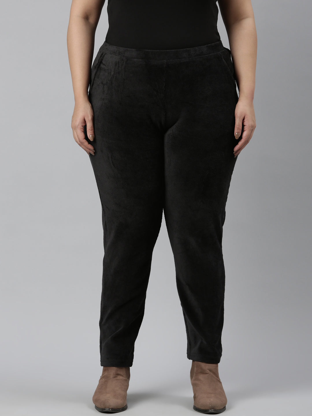 Bundle up in freezing temparatures in the Solid Black Corduroy Jeggings. Made from cotton, polyester & PU, the slip on trousers have a elasticised waistband, slant pockets & a tapered fit.